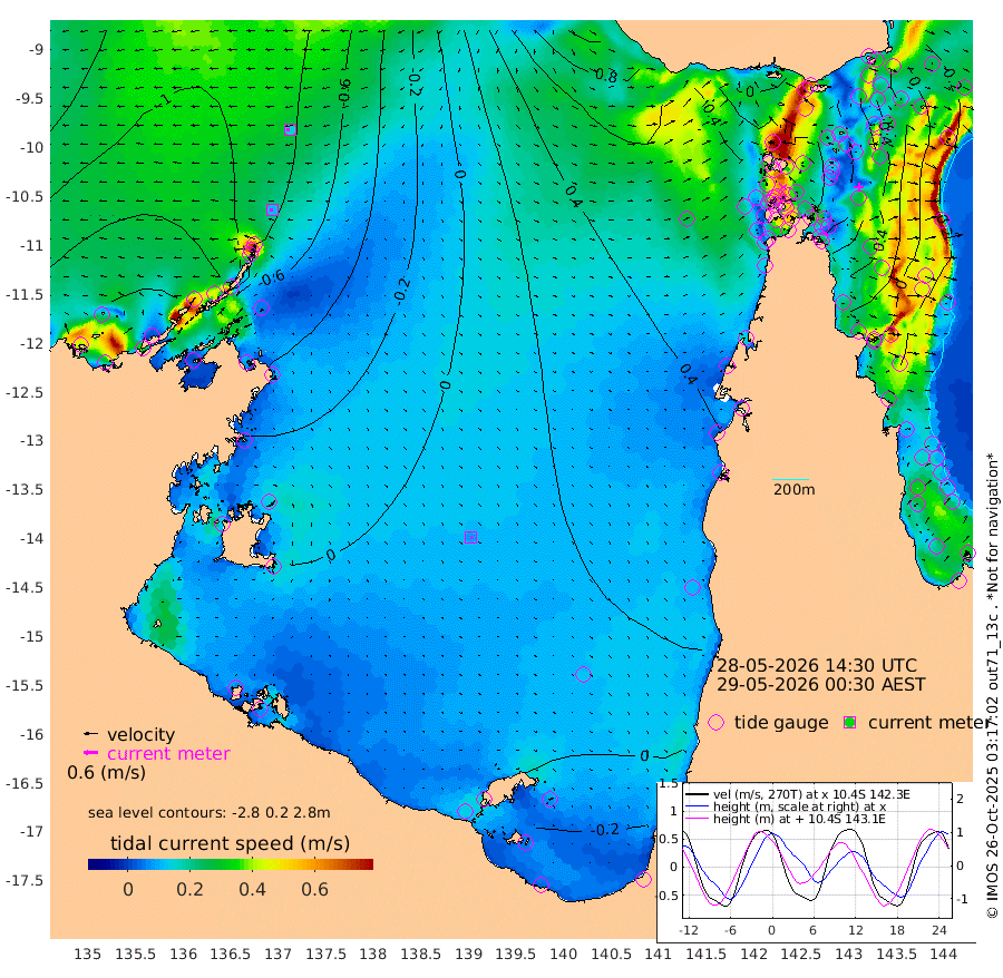 11cm/s -90T +3cm/s rms + 7cm/s -42T. ARA-GOC87 57m 9cm/s 133T +3cm/s rms + 2cm/s -2T. ARA-GOC87 60m 15cm/s -102T +2cm/s rms + 3cm/s 61T. ARA-GOC87 47m 56cm Daru 48cm Bobo Island 0cm Meer Island Barge 2cm Bramble Cay 32cm Unnamed Cay 38cm Pearce Cay 26cm Stephens Island 19cm Merrie England Shoals 48cm Mutacomal Reef 25cm Darnley Island Barge -4cm East Cay 45cm Yorke Island Barge 47cm Rennel Island 55cm Aureed Island 75cm Dungeness Reef 102cm Zagai Island 102cm Yam Island 116cm Dauan Island 110cm Saibai Island 113cm Phipi Reef 104cm Warrior Reef - West 103cm Mabuiag Island Barge 49cm Half Way Island 71cm Coconut Island 66cm Dugong Islet 88cm Poll Island 88cm Kirkcaldie Reef 125cm Suarji Island 90cm Sue Islet 71cm Hawkesbury Island 111cm Alert Patches 108cm Twin Island 86cm Badu Island 121cm St Pauls (Moa Island) 85cm Kubin (Moa Island) 105cm Ince Point 103cm Thursday Island 105cm Nardana Patches 93cm Turtle Head 81cm Round Island 77cm Goods Island 76cm Booby Island 76cm White Rocks Area 82cm Carpentaria 102cm Papou Point 88cm Bampfield Head 60cm Crab Island 73cm Red Wallis Island 77cm Packe Island 74cm Harrington Reef 83cm Herald Camp 39cm Sharp Point 78cm Red Island Point 98cm Possession Island 89cm Alpha Rock 90cm Frederick Point 56cm Wyborn Reef Light 64cm Tetley Island 12cm Triangle Reef 60cm Turtle Head Island 10cm Maclennan Cay -11cm Raine Island 32cm Mcsweeny Reef 22cm Collette Reef 2cm Shadwell Reef 18cm Hannibal Island -2cm Round Point 56cm Vrilya Point 3cm Cape Grenville 3cm Hicks Island 9cm Sir Charles Hardy Island 3cm Harvey Island -11cm Kay Reef -10cm Rocky Island -16cm Chapman Island -13cm Ham Reef -9cm Jubilee Reef -7cm Night Island -14cm Unnamed Reef No. 3 -13cm Morris Island -1cm 1st 3 Mile Opening -6cm Creech Reef -20cm Fife Island -24cm Eden Reef -14cm Stanley Island -22cm Normanby River -145cm Yabooma Island -158cm Hutchison River -148cm Elcho Island -145cm North West Crocodile Island -89cm Cape Wessel -141cm Stevens Island -69cm Guluwuru Island -136cm Hopeful Bay -100cm Auster Point -109cm Two Island Bay -143cm Cadell Strait -121cm Mallison Island -72cm Melville Bay (Gove Harbour) -71cm Truant Island -41cm Cape Arnhem -25cm Cape Grey -29cm Hawk Island -13cm Milner Bay (Groote Eylandt) -11cm Cape Beatrice 14cm West Island 20cm Centre Island -1cm Mornington Island 7cm West Wellesley Islands -9cm Bountiful Island -43cm Albert River Mouth -53cm Sweers Island -40cm Karumba 3cm Nassau River Offshore 22cm Christmas Creek 23cm Archer River 40cm Boyd Point 34cm Weipa (Humbug Point) 33cm Pennefather River 52cm Cullen Point