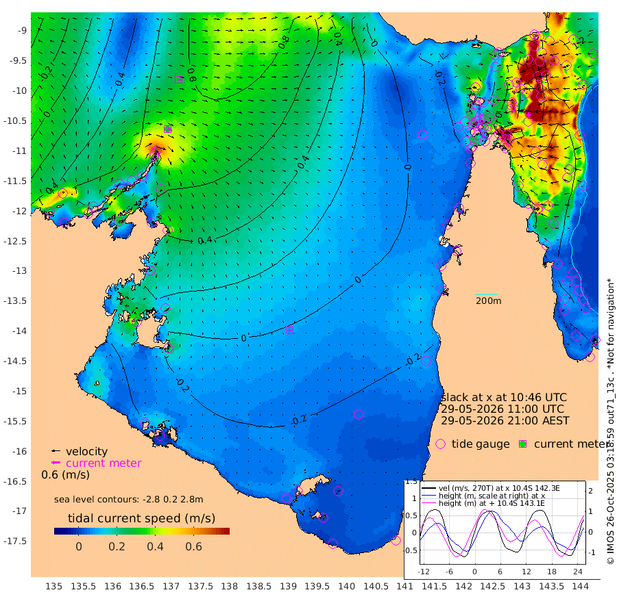 30cm/s 109T +3cm/s rms + 7cm/s -42T. ARA-GOC87 57m 7cm/s 144T +3cm/s rms + 2cm/s -2T. ARA-GOC87 60m 27cm/s 101T +2cm/s rms + 3cm/s 61T. ARA-GOC87 47m 100cm Daru 116cm Bobo Island 94cm Meer Island Barge 113cm Bramble Cay 112cm Unnamed Cay 120cm Pearce Cay 114cm Stephens Island 119cm Merrie England Shoals 105cm Mutacomal Reef 108cm Darnley Island Barge 106cm East Cay 101cm Yorke Island Barge 106cm Rennel Island 106cm Aureed Island 85cm Dungeness Reef 52cm Zagai Island 42cm Yam Island -8cm Dauan Island 0cm Saibai Island 17cm Phipi Reef 44cm Warrior Reef - West 2cm Mabuiag Island Barge 98cm Half Way Island 102cm Coconut Island 90cm Dugong Islet 69cm Poll Island 72cm Kirkcaldie Reef 50cm Suarji Island 62cm Sue Islet 15cm Hawkesbury Island 51cm Alert Patches 53cm Twin Island 17cm Badu Island 35cm St Pauls (Moa Island) 17cm Kubin (Moa Island) 30cm Ince Point 22cm Thursday Island 23cm Nardana Patches 22cm Turtle Head 20cm Round Island 18cm Goods Island 6cm Booby Island 13cm White Rocks Area 4cm Carpentaria 41cm Papou Point 32cm Bampfield Head 6cm Crab Island 6cm Red Wallis Island 19cm Packe Island 106cm Harrington Reef 0cm Herald Camp 0cm Sharp Point 28cm Red Island Point 42cm Possession Island 49cm Alpha Rock 76cm Frederick Point 106cm Wyborn Reef Light 98cm Tetley Island 85cm Triangle Reef 115cm Turtle Head Island 88cm Maclennan Cay 84cm Raine Island 107cm Mcsweeny Reef 106cm Collette Reef 89cm Shadwell Reef 119cm Hannibal Island 120cm Round Point 1cm Vrilya Point 105cm Cape Grenville 101cm Hicks Island 98cm Sir Charles Hardy Island 31cm Harvey Island 106cm Kay Reef 91cm Rocky Island 92cm Chapman Island 86cm Ham Reef 88cm Jubilee Reef 81cm Night Island 91cm Unnamed Reef No. 3 96cm Morris Island 84cm 1st 3 Mile Opening 90cm Creech Reef 93cm Fife Island 109cm Eden Reef 95cm Stanley Island 106cm Normanby River 55cm Yabooma Island 93cm Hutchison River 67cm Elcho Island 54cm North West Crocodile Island 73cm Cape Wessel 74cm Stevens Island 96cm Guluwuru Island 66cm Hopeful Bay 70cm Auster Point 58cm Two Island Bay 93cm Cadell Strait 146cm Mallison Island 78cm Melville Bay (Gove Harbour) 86cm Truant Island 56cm Cape Arnhem 29cm Cape Grey 14cm Hawk Island -28cm Milner Bay (Groote Eylandt) -34cm Cape Beatrice -74cm West Island -68cm Centre Island -57cm Mornington Island -63cm West Wellesley Islands -78cm Bountiful Island -97cm Albert River Mouth -96cm Sweers Island -91cm Karumba -44cm Nassau River Offshore -19cm Christmas Creek 6cm Archer River 6cm Boyd Point 2cm Weipa (Humbug Point) 10cm Pennefather River -7cm Cullen Point