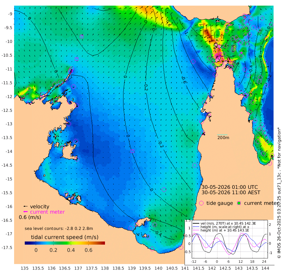 13cm/s 28T +3cm/s rms + 7cm/s -42T. ARA-GOC87 57m 7cm/s -26T +3cm/s rms + 2cm/s -2T. ARA-GOC87 60m 16cm/s 26T +2cm/s rms + 3cm/s 61T. ARA-GOC87 47m 37cm Daru 44cm Bobo Island -5cm Meer Island Barge 14cm Bramble Cay 27cm Unnamed Cay 35cm Pearce Cay 23cm Stephens Island 28cm Merrie England Shoals 43cm Mutacomal Reef 18cm Darnley Island Barge -3cm East Cay 29cm Yorke Island Barge 27cm Rennel Island 40cm Aureed Island 29cm Dungeness Reef 34cm Zagai Island 28cm Yam Island -6cm Dauan Island 0cm Saibai Island -4cm Phipi Reef 33cm Warrior Reef - West -28cm Mabuiag Island Barge 32cm Half Way Island 34cm Coconut Island 34cm Dugong Islet 34cm Poll Island 23cm Kirkcaldie Reef 20cm Suarji Island 25cm Sue Islet -116cm Hawkesbury Island -7cm Alert Patches 8cm Twin Island -102cm Badu Island 9cm St Pauls (Moa Island) -71cm Kubin (Moa Island) -24cm Ince Point -44cm Thursday Island -38cm Nardana Patches -74cm Turtle Head -92cm Round Island -117cm Goods Island -144cm Booby Island -126cm White Rocks Area -122cm Carpentaria 2cm Papou Point -158cm Bampfield Head -128cm Crab Island -122cm Red Wallis Island -81cm Packe Island 40cm Harrington Reef -124cm Herald Camp 12cm Sharp Point -70cm Red Island Point -37cm Possession Island 21cm Alpha Rock 23cm Frederick Point 39cm Wyborn Reef Light 39cm Tetley Island 1cm Triangle Reef 21cm Turtle Head Island -6cm Maclennan Cay -27cm Raine Island 23cm Mcsweeny Reef 15cm Collette Reef -9cm Shadwell Reef 21cm Hannibal Island 12cm Round Point -124cm Vrilya Point 5cm Cape Grenville -3cm Hicks Island -7cm Sir Charles Hardy Island 1cm Harvey Island -7cm Kay Reef -17cm Rocky Island -21cm Chapman Island -23cm Ham Reef -20cm Jubilee Reef -10cm Night Island -20cm Unnamed Reef No. 3 -17cm Morris Island -31cm 1st 3 Mile Opening -21cm Creech Reef -11cm Fife Island -19cm Eden Reef -20cm Stanley Island -9cm Normanby River -9cm Yabooma Island 1cm Hutchison River 2cm Elcho Island 6cm North West Crocodile Island 26cm Cape Wessel 19cm Stevens Island 33cm Guluwuru Island 10cm Hopeful Bay 11cm Auster Point 20cm Two Island Bay 26cm Cadell Strait 80cm Mallison Island 29cm Melville Bay (Gove Harbour) 28cm Truant Island 25cm Cape Arnhem 22cm Cape Grey 36cm Hawk Island 43cm Milner Bay (Groote Eylandt) 45cm Cape Beatrice 55cm West Island 51cm Centre Island 57cm Mornington Island 56cm West Wellesley Islands 57cm Bountiful Island 87cm Albert River Mouth 93cm Sweers Island 74cm Karumba 25cm Nassau River Offshore -18cm Christmas Creek -66cm Archer River -77cm Boyd Point -89cm Weipa (Humbug Point) -88cm Pennefather River -106cm Cullen Point