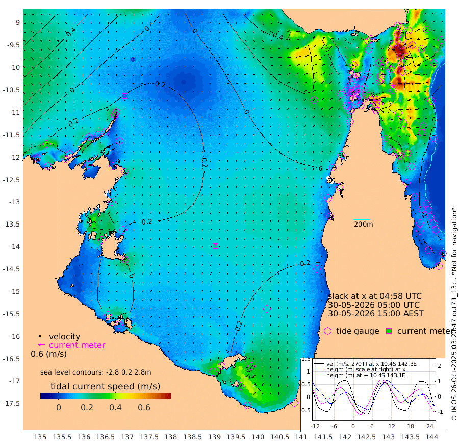 5cm/s -36T +3cm/s rms + 7cm/s -42T. ARA-GOC87 57m 19cm/s 10T +3cm/s rms + 2cm/s -2T. ARA-GOC87 60m 2cm/s -16T +2cm/s rms + 3cm/s 61T. ARA-GOC87 47m -119cm Daru -123cm Bobo Island -95cm Meer Island Barge -119cm Bramble Cay -126cm Unnamed Cay -123cm Pearce Cay -120cm Stephens Island -128cm Merrie England Shoals -126cm Mutacomal Reef -112cm Darnley Island Barge -110cm East Cay -111cm Yorke Island Barge -118cm Rennel Island -115cm Aureed Island -108cm Dungeness Reef -84cm Zagai Island -85cm Yam Island -56cm Dauan Island -57cm Saibai Island -81cm Phipi Reef -92cm Warrior Reef - West -40cm Mabuiag Island Barge -108cm Half Way Island -114cm Coconut Island -108cm Dugong Islet -93cm Poll Island -99cm Kirkcaldie Reef -86cm Suarji Island -86cm Sue Islet -38cm Hawkesbury Island -75cm Alert Patches -77cm Twin Island -47cm Badu Island -66cm St Pauls (Moa Island) -45cm Kubin (Moa Island) -58cm Ince Point -49cm Thursday Island -51cm Nardana Patches -53cm Turtle Head -43cm Round Island -42cm Goods Island -19cm Booby Island -31cm White Rocks Area 10cm Carpentaria -63cm Papou Point -34cm Bampfield Head -10cm Crab Island -22cm Red Wallis Island -49cm Packe Island -116cm Harrington Reef -37cm Herald Camp -13cm Sharp Point -52cm Red Island Point -57cm Possession Island -73cm Alpha Rock -94cm Frederick Point -117cm Wyborn Reef Light -111cm Tetley Island -90cm Triangle Reef -108cm Turtle Head Island -95cm Maclennan Cay -86cm Raine Island -114cm Mcsweeny Reef -113cm Collette Reef -95cm Shadwell Reef -125cm Hannibal Island -123cm Round Point 10cm Vrilya Point -111cm Cape Grenville -107cm Hicks Island -117cm Sir Charles Hardy Island -33cm Harvey Island -111cm Kay Reef -98cm Rocky Island -98cm Chapman Island -89cm Ham Reef -92cm Jubilee Reef -83cm Night Island -93cm Unnamed Reef No. 3 -100cm Morris Island -87cm 1st 3 Mile Opening -93cm Creech Reef -93cm Fife Island -110cm Eden Reef -98cm Stanley Island -109cm Normanby River -27cm Yabooma Island -54cm Hutchison River -29cm Elcho Island -25cm North West Crocodile Island -27cm Cape Wessel -30cm Stevens Island -56cm Guluwuru Island -28cm Hopeful Bay -21cm Auster Point -10cm Two Island Bay -43cm Cadell Strait -98cm Mallison Island -43cm Melville Bay (Gove Harbour) -42cm Truant Island -29cm Cape Arnhem -17cm Cape Grey -8cm Hawk Island 23cm Milner Bay (Groote Eylandt) 17cm Cape Beatrice 40cm West Island 41cm Centre Island -15cm Mornington Island -11cm West Wellesley Islands -39cm Bountiful Island -13cm Albert River Mouth 6cm Sweers Island -18cm Karumba -42cm Nassau River Offshore -56cm Christmas Creek -42cm Archer River -29cm Boyd Point -39cm Weipa (Humbug Point) 1cm Pennefather River -3cm Cullen Point