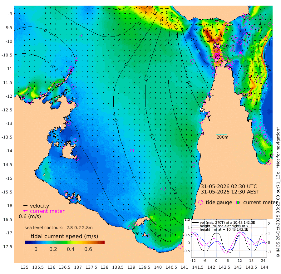 15cm/s 28T +3cm/s rms + 7cm/s -42T. ARA-GOC87 57m 14cm/s -3T +3cm/s rms + 2cm/s -2T. ARA-GOC87 60m 18cm/s 30T +2cm/s rms + 3cm/s 61T. ARA-GOC87 47m -12cm Daru -6cm Bobo Island -45cm Meer Island Barge -37cm Bramble Cay -27cm Unnamed Cay -16cm Pearce Cay -28cm Stephens Island -28cm Merrie England Shoals -11cm Mutacomal Reef -28cm Darnley Island Barge -50cm East Cay -16cm Yorke Island Barge -22cm Rennel Island -5cm Aureed Island -14cm Dungeness Reef 7cm Zagai Island -4cm Yam Island -18cm Dauan Island -10cm Saibai Island -30cm Phipi Reef 3cm Warrior Reef - West -37cm Mabuiag Island Barge -15cm Half Way Island -11cm Coconut Island -11cm Dugong Islet -2cm Poll Island -18cm Kirkcaldie Reef -7cm Suarji Island -5cm Sue Islet -137cm Hawkesbury Island -33cm Alert Patches -20cm Twin Island -117cm Badu Island -14cm St Pauls (Moa Island) -92cm Kubin (Moa Island) -44cm Ince Point -62cm Thursday Island -56cm Nardana Patches -94cm Turtle Head -114cm Round Island -135cm Goods Island -152cm Booby Island -138cm White Rocks Area -114cm Carpentaria -22cm Papou Point -171cm Bampfield Head -132cm Crab Island -131cm Red Wallis Island -105cm Packe Island -8cm Harrington Reef -146cm Herald Camp 8cm Sharp Point -90cm Red Island Point -60cm Possession Island -6cm Alpha Rock -14cm Frederick Point -10cm Wyborn Reef Light -7cm Tetley Island -35cm Triangle Reef -27cm Turtle Head Island -46cm Maclennan Cay -61cm Raine Island -24cm Mcsweeny Reef -31cm Collette Reef -47cm Shadwell Reef -31cm Hannibal Island -41cm Round Point -121cm Vrilya Point -43cm Cape Grenville -49cm Hicks Island -54cm Sir Charles Hardy Island -13cm Harvey Island -54cm Kay Reef -57cm Rocky Island -58cm Chapman Island -58cm Ham Reef -56cm Jubilee Reef -45cm Night Island -57cm Unnamed Reef No. 3 -59cm Morris Island -66cm 1st 3 Mile Opening -58cm Creech Reef -48cm Fife Island -65cm Eden Reef -61cm Stanley Island -56cm Normanby River -42cm Yabooma Island -44cm Hutchison River -30cm Elcho Island -27cm North West Crocodile Island 10cm Cape Wessel -9cm Stevens Island 12cm Guluwuru Island -17cm Hopeful Bay -8cm Auster Point -1cm Two Island Bay -7cm Cadell Strait 62cm Mallison Island 10cm Melville Bay (Gove Harbour) 11cm Truant Island 16cm Cape Arnhem 19cm Cape Grey 33cm Hawk Island 55cm Milner Bay (Groote Eylandt) 53cm Cape Beatrice 73cm West Island 71cm Centre Island 53cm Mornington Island 58cm West Wellesley Islands 45cm Bountiful Island 82cm Albert River Mouth 96cm Sweers Island 62cm Karumba 8cm Nassau River Offshore -38cm Christmas Creek -80cm Archer River -86cm Boyd Point -102cm Weipa (Humbug Point) -87cm Pennefather River -108cm Cullen Point