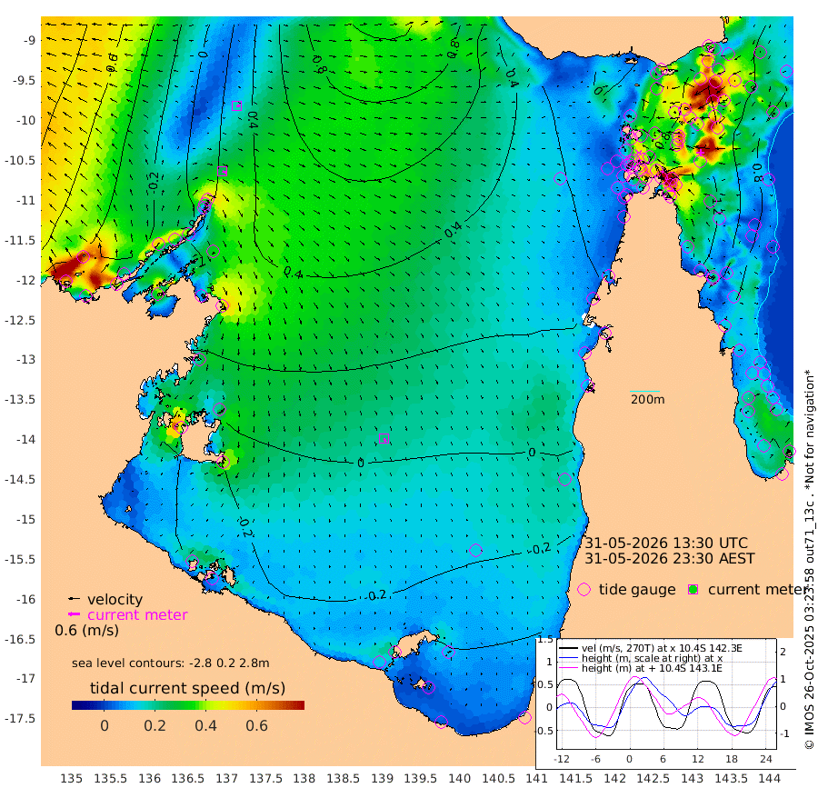 25cm/s 113T +3cm/s rms + 7cm/s -42T. ARA-GOC87 57m 21cm/s 158T +3cm/s rms + 2cm/s -2T. ARA-GOC87 60m 17cm/s 106T +2cm/s rms + 3cm/s 61T. ARA-GOC87 47m 130cm Daru 136cm Bobo Island 81cm Meer Island Barge 104cm Bramble Cay 123cm Unnamed Cay 133cm Pearce Cay 116cm Stephens Island 121cm Merrie England Shoals 133cm Mutacomal Reef 112cm Darnley Island Barge 90cm East Cay 122cm Yorke Island Barge 124cm Rennel Island 130cm Aureed Island 126cm Dungeness Reef 123cm Zagai Island 115cm Yam Island 97cm Dauan Island 100cm Saibai Island 106cm Phipi Reef 125cm Warrior Reef - West 84cm Mabuiag Island Barge 117cm Half Way Island 138cm Coconut Island 123cm Dugong Islet 124cm Poll Island 120cm Kirkcaldie Reef 126cm Suarji Island 122cm Sue Islet 76cm Hawkesbury Island 119cm Alert Patches 122cm Twin Island 79cm Badu Island 116cm St Pauls (Moa Island) 81cm Kubin (Moa Island) 100cm Ince Point 91cm Thursday Island 93cm Nardana Patches 85cm Turtle Head 80cm Round Island 68cm Goods Island 53cm Booby Island 57cm White Rocks Area 45cm Carpentaria 105cm Papou Point 85cm Bampfield Head 40cm Crab Island 56cm Red Wallis Island 79cm Packe Island 138cm Harrington Reef 69cm Herald Camp 28cm Sharp Point 77cm Red Island Point 102cm Possession Island 112cm Alpha Rock 129cm Frederick Point 139cm Wyborn Reef Light 139cm Tetley Island 88cm Triangle Reef 138cm Turtle Head Island 82cm Maclennan Cay 63cm Raine Island 117cm Mcsweeny Reef 111cm Collette Reef 83cm Shadwell Reef 118cm Hannibal Island 109cm Round Point 30cm Vrilya Point 95cm Cape Grenville 90cm Hicks Island 96cm Sir Charles Hardy Island 28cm Harvey Island 87cm Kay Reef 73cm Rocky Island 76cm Chapman Island 69cm Ham Reef 71cm Jubilee Reef 67cm Night Island 72cm Unnamed Reef No. 3 74cm Morris Island 66cm 1st 3 Mile Opening 72cm Creech Reef 70cm Fife Island 79cm Eden Reef 72cm Stanley Island 78cm Normanby River -24cm Yabooma Island -3cm Hutchison River -23cm Elcho Island -31cm North West Crocodile Island 30cm Cape Wessel 1cm Stevens Island 62cm Guluwuru Island -2cm Hopeful Bay 16cm Auster Point 6cm Two Island Bay 21cm Cadell Strait 148cm Mallison Island 43cm Melville Bay (Gove Harbour) 53cm Truant Island 36cm Cape Arnhem 7cm Cape Grey -3cm Hawk Island -48cm Milner Bay (Groote Eylandt) -54cm Cape Beatrice -84cm West Island -78cm Centre Island -68cm Mornington Island -69cm West Wellesley Islands -91cm Bountiful Island -139cm Albert River Mouth -145cm Sweers Island -127cm Karumba -39cm Nassau River Offshore 2cm Christmas Creek 23cm Archer River 35cm Boyd Point 28cm Weipa (Humbug Point) 25cm Pennefather River 31cm Cullen Point