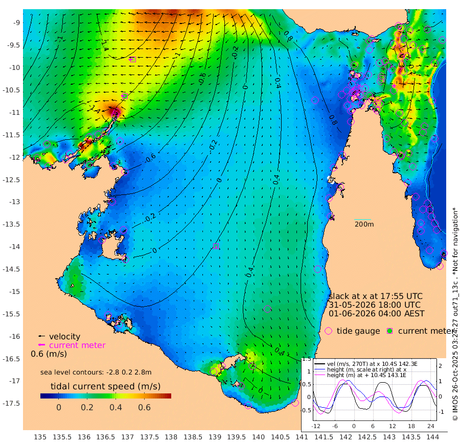 37cm/s -87T +3cm/s rms + 7cm/s -42T. ARA-GOC87 57m 19cm/s 176T +3cm/s rms + 2cm/s -2T. ARA-GOC87 60m 41cm/s -95T +2cm/s rms + 3cm/s 61T. ARA-GOC87 47m -8cm Daru -21cm Bobo Island -14cm Meer Island Barge -30cm Bramble Cay -23cm Unnamed Cay -21cm Pearce Cay -19cm Stephens Island -33cm Merrie England Shoals -20cm Mutacomal Reef -16cm Darnley Island Barge -16cm East Cay -10cm Yorke Island Barge -10cm Rennel Island -8cm Aureed Island 11cm Dungeness Reef 26cm Zagai Island 37cm Yam Island 80cm Dauan Island 71cm Saibai Island 75cm Phipi Reef 42cm Warrior Reef - West 69cm Mabuiag Island Barge -9cm Half Way Island -5cm Coconut Island 3cm Dugong Islet 16cm Poll Island 24cm Kirkcaldie Reef 47cm Suarji Island 23cm Sue Islet 90cm Hawkesbury Island 50cm Alert Patches 41cm Twin Island 85cm Badu Island 52cm St Pauls (Moa Island) 75cm Kubin (Moa Island) 61cm Ince Point 71cm Thursday Island 68cm Nardana Patches 82cm Turtle Head 77cm Round Island 91cm Goods Island 104cm Booby Island 91cm White Rocks Area 91cm Carpentaria 41cm Papou Point 97cm Bampfield Head 89cm Crab Island 96cm Red Wallis Island 81cm Packe Island -3cm Harrington Reef 113cm Herald Camp 18cm Sharp Point 76cm Red Island Point 57cm Possession Island 22cm Alpha Rock 21cm Frederick Point -21cm Wyborn Reef Light -14cm Tetley Island -9cm Triangle Reef -15cm Turtle Head Island -3cm Maclennan Cay -7cm Raine Island -16cm Mcsweeny Reef -18cm Collette Reef -11cm Shadwell Reef -27cm Hannibal Island -31cm Round Point 86cm Vrilya Point -19cm Cape Grenville -13cm Hicks Island -3cm Sir Charles Hardy Island -3cm Harvey Island -21cm Kay Reef -9cm Rocky Island -10cm Chapman Island -6cm Ham Reef -9cm Jubilee Reef -9cm Night Island -8cm Unnamed Reef No. 3 -13cm Morris Island -2cm 1st 3 Mile Opening -5cm Creech Reef -12cm Fife Island -22cm Eden Reef -13cm Stanley Island -22cm Normanby River -158cm Yabooma Island -197cm Hutchison River -175cm Elcho Island -163cm North West Crocodile Island -136cm Cape Wessel -180cm Stevens Island -135cm Guluwuru Island -158cm Hopeful Bay -141cm Auster Point -143cm Two Island Bay -181cm Cadell Strait -188cm Mallison Island -122cm Melville Bay (Gove Harbour) -129cm Truant Island -83cm Cape Arnhem -52cm Cape Grey -49cm Hawk Island -28cm Milner Bay (Groote Eylandt) -14cm Cape Beatrice 25cm West Island 24cm Centre Island 38cm Mornington Island 42cm West Wellesley Islands 53cm Bountiful Island 9cm Albert River Mouth -1cm Sweers Island 29cm Karumba 65cm Nassau River Offshore 82cm Christmas Creek 73cm Archer River 77cm Boyd Point 85cm Weipa (Humbug Point) 60cm Pennefather River 89cm Cullen Point