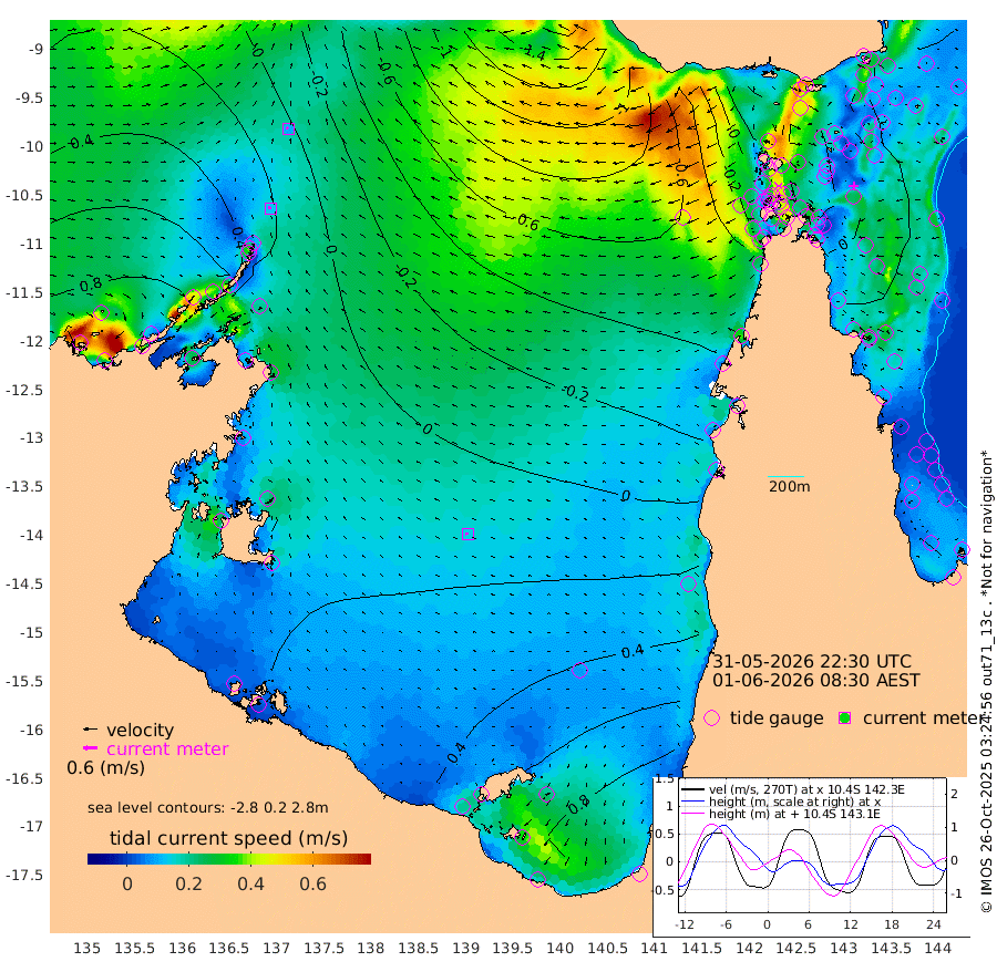 13cm/s -69T +3cm/s rms + 7cm/s -42T. ARA-GOC87 57m 14cm/s -93T +3cm/s rms + 2cm/s -2T. ARA-GOC87 60m 9cm/s -59T +2cm/s rms + 3cm/s 61T. ARA-GOC87 47m 8cm Daru 4cm Bobo Island 14cm Meer Island Barge 24cm Bramble Cay 18cm Unnamed Cay 7cm Pearce Cay 12cm Stephens Island 23cm Merrie England Shoals 14cm Mutacomal Reef 8cm Darnley Island Barge 19cm East Cay 2cm Yorke Island Barge 6cm Rennel Island -3cm Aureed Island 0cm Dungeness Reef -19cm Zagai Island -11cm Yam Island -20cm Dauan Island -24cm Saibai Island 4cm Phipi Reef -10cm Warrior Reef - West -32cm Mabuiag Island Barge 3cm Half Way Island -7cm Coconut Island -2cm Dugong Islet -14cm Poll Island -6cm Kirkcaldie Reef -26cm Suarji Island -18cm Sue Islet -37cm Hawkesbury Island -31cm Alert Patches -31cm Twin Island -28cm Badu Island -35cm St Pauls (Moa Island) -35cm Kubin (Moa Island) -34cm Ince Point -39cm Thursday Island -37cm Nardana Patches -32cm Turtle Head -38cm Round Island -34cm Goods Island -51cm Booby Island -42cm White Rocks Area -87cm Carpentaria -30cm Papou Point -73cm Bampfield Head -45cm Crab Island -50cm Red Wallis Island -34cm Packe Island -9cm Harrington Reef -45cm Herald Camp -9cm Sharp Point -23cm Red Island Point -38cm Possession Island -26cm Alpha Rock -21cm Frederick Point -2cm Wyborn Reef Light -7cm Tetley Island 5cm Triangle Reef -13cm Turtle Head Island 11cm Maclennan Cay 17cm Raine Island 7cm Mcsweeny Reef 12cm Collette Reef 14cm Shadwell Reef 18cm Hannibal Island 22cm Round Point -57cm Vrilya Point 19cm Cape Grenville 18cm Hicks Island 18cm Sir Charles Hardy Island 4cm Harvey Island 24cm Kay Reef 21cm Rocky Island 17cm Chapman Island 14cm Ham Reef 16cm Jubilee Reef 13cm Night Island 14cm Unnamed Reef No. 3 21cm Morris Island 13cm 1st 3 Mile Opening 14cm Creech Reef 14cm Fife Island 26cm Eden Reef 20cm Stanley Island 26cm Normanby River 84cm Yabooma Island 101cm Hutchison River 87cm Elcho Island 92cm North West Crocodile Island 15cm Cape Wessel 66cm Stevens Island 19cm Guluwuru Island 62cm Hopeful Bay 30cm Auster Point 31cm Two Island Bay 65cm Cadell Strait -12cm Mallison Island 24cm Melville Bay (Gove Harbour) 12cm Truant Island 7cm Cape Arnhem 21cm Cape Grey 26cm Hawk Island 29cm Milner Bay (Groote Eylandt) 40cm Cape Beatrice 37cm West Island 31cm Centre Island 89cm Mornington Island 84cm West Wellesley Islands 141cm Bountiful Island 175cm Albert River Mouth 164cm Sweers Island 168cm Karumba 87cm Nassau River Offshore 53cm Christmas Creek 13cm Archer River -19cm Boyd Point -1cm Weipa (Humbug Point) -33cm Pennefather River -46cm Cullen Point
