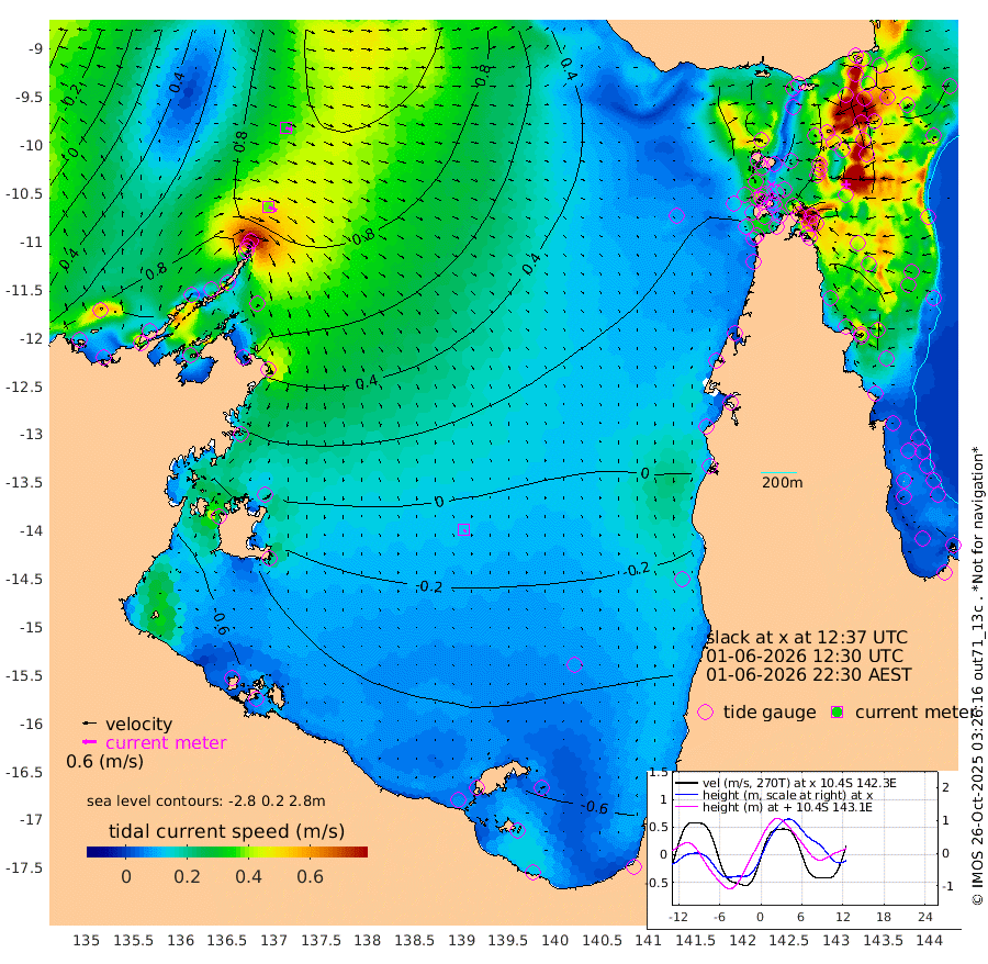 37cm/s 116T +3cm/s rms + 7cm/s -42T. ARA-GOC87 57m 13cm/s 154T +3cm/s rms + 2cm/s -2T. ARA-GOC87 60m 32cm/s 108T +2cm/s rms + 3cm/s 61T. ARA-GOC87 47m 106cm Daru 112cm Bobo Island 85cm Meer Island Barge 107cm Bramble Cay 116cm Unnamed Cay 113cm Pearce Cay 107cm Stephens Island 119cm Merrie England Shoals 116cm Mutacomal Reef 101cm Darnley Island Barge 93cm East Cay 102cm Yorke Island Barge 107cm Rennel Island 100cm Aureed Island 96cm Dungeness Reef 79cm Zagai Island 75cm Yam Island 50cm Dauan Island 49cm Saibai Island 60cm Phipi Reef 74cm Warrior Reef - West 53cm Mabuiag Island Barge 99cm Half Way Island 108cm Coconut Island 97cm Dugong Islet 89cm Poll Island 88cm Kirkcaldie Reef 76cm Suarji Island 83cm Sue Islet 88cm Hawkesbury Island 84cm Alert Patches 84cm Twin Island 80cm Badu Island 73cm St Pauls (Moa Island) 78cm Kubin (Moa Island) 72cm Ince Point 69cm Thursday Island 70cm Nardana Patches 74cm Turtle Head 86cm Round Island 78cm Goods Island 68cm Booby Island 71cm White Rocks Area 47cm Carpentaria 72cm Papou Point 107cm Bampfield Head 53cm Crab Island 65cm Red Wallis Island 78cm Packe Island 106cm Harrington Reef 78cm Herald Camp 10cm Sharp Point 64cm Red Island Point 82cm Possession Island 81cm Alpha Rock 95cm Frederick Point 121cm Wyborn Reef Light 117cm Tetley Island 84cm Triangle Reef 125cm Turtle Head Island 81cm Maclennan Cay 74cm Raine Island 104cm Mcsweeny Reef 103cm Collette Reef 86cm Shadwell Reef 114cm Hannibal Island 113cm Round Point 41cm Vrilya Point 98cm Cape Grenville 93cm Hicks Island 96cm Sir Charles Hardy Island 28cm Harvey Island 96cm Kay Reef 81cm Rocky Island 83cm Chapman Island 76cm Ham Reef 79cm Jubilee Reef 72cm Night Island 78cm Unnamed Reef No. 3 84cm Morris Island 78cm 1st 3 Mile Opening 79cm Creech Reef 75cm Fife Island 95cm Eden Reef 85cm Stanley Island 90cm Normanby River 100cm Yabooma Island 135cm Hutchison River 101cm Elcho Island 86cm North West Crocodile Island 96cm Cape Wessel 111cm Stevens Island 115cm Guluwuru Island 99cm Hopeful Bay 98cm Auster Point 92cm Two Island Bay 124cm Cadell Strait 185cm Mallison Island 95cm Melville Bay (Gove Harbour) 107cm Truant Island 65cm Cape Arnhem 21cm Cape Grey 7cm Hawk Island -51cm Milner Bay (Groote Eylandt) -63cm Cape Beatrice -119cm West Island -113cm Centre Island -107cm Mornington Island -113cm West Wellesley Islands -130cm Bountiful Island -159cm Albert River Mouth -169cm Sweers Island -153cm Karumba -75cm Nassau River Offshore -27cm Christmas Creek 15cm Archer River 28cm Boyd Point 27cm Weipa (Humbug Point) 30cm Pennefather River 36cm Cullen Point