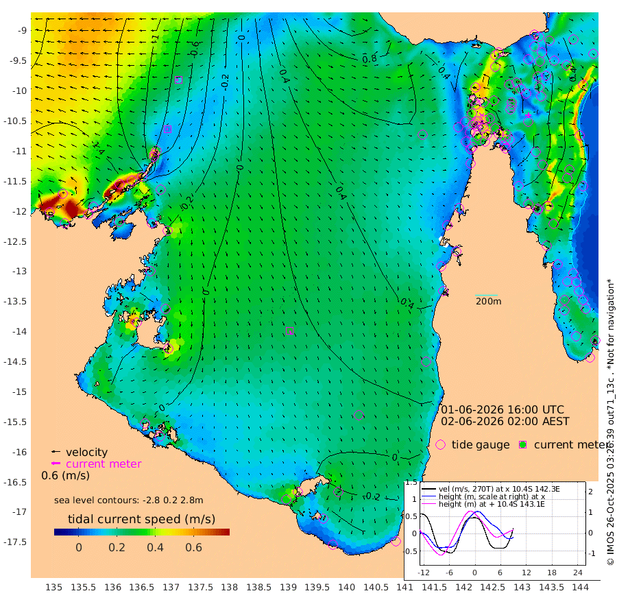 7cm/s -111T +3cm/s rms + 7cm/s -42T. ARA-GOC87 57m 29cm/s 162T +3cm/s rms + 2cm/s -2T. ARA-GOC87 60m 15cm/s -96T +2cm/s rms + 3cm/s 61T. ARA-GOC87 47m 84cm Daru 80cm Bobo Island 36cm Meer Island Barge 43cm Bramble Cay 63cm Unnamed Cay 74cm Pearce Cay 60cm Stephens Island 55cm Merrie England Shoals 79cm Mutacomal Reef 61cm Darnley Island Barge 40cm East Cay 76cm Yorke Island Barge 75cm Rennel Island 86cm Aureed Island 92cm Dungeness Reef 111cm Zagai Island 109cm Yam Island 130cm Dauan Island 131cm Saibai Island 122cm Phipi Reef 124cm Warrior Reef - West 107cm Mabuiag Island Barge 70cm Half Way Island 93cm Coconut Island 85cm Dugong Islet 100cm Poll Island 96cm Kirkcaldie Reef 123cm Suarji Island 105cm Sue Islet 92cm Hawkesbury Island 115cm Alert Patches 114cm Twin Island 92cm Badu Island 119cm St Pauls (Moa Island) 94cm Kubin (Moa Island) 108cm Ince Point 104cm Thursday Island 105cm Nardana Patches 99cm Turtle Head 91cm Round Island 84cm Goods Island 79cm Booby Island 75cm White Rocks Area 79cm Carpentaria 99cm Papou Point 98cm Bampfield Head 64cm Crab Island 83cm Red Wallis Island 95cm Packe Island 92cm Harrington Reef 104cm Herald Camp 36cm Sharp Point 88cm Red Island Point 102cm Possession Island 101cm Alpha Rock 105cm Frederick Point 85cm Wyborn Reef Light 91cm Tetley Island 51cm Triangle Reef 80cm Turtle Head Island 44cm Maclennan Cay 25cm Raine Island 66cm Mcsweeny Reef 60cm Collette Reef 41cm Shadwell Reef 57cm Hannibal Island 46cm Round Point 59cm Vrilya Point 44cm Cape Grenville 41cm Hicks Island 55cm Sir Charles Hardy Island 14cm Harvey Island 34cm Kay Reef 32cm Rocky Island 36cm Chapman Island 33cm Ham Reef 31cm Jubilee Reef 30cm Night Island 34cm Unnamed Reef No. 3 28cm Morris Island 28cm 1st 3 Mile Opening 33cm Creech Reef 33cm Fife Island 24cm Eden Reef 27cm Stanley Island 25cm Normanby River -155cm Yabooma Island -174cm Hutchison River -166cm Elcho Island -164cm North West Crocodile Island -73cm Cape Wessel -138cm Stevens Island -49cm Guluwuru Island -124cm Hopeful Bay -95cm Auster Point -102cm Two Island Bay -125cm Cadell Strait 35cm Mallison Island -53cm Melville Bay (Gove Harbour) -49cm Truant Island -27cm Cape Arnhem -33cm Cape Grey -32cm Hawk Island -50cm Milner Bay (Groote Eylandt) -46cm Cape Beatrice -37cm West Island -34cm Centre Island -24cm Mornington Island -20cm West Wellesley Islands -40cm Bountiful Island -106cm Albert River Mouth -111cm Sweers Island -85cm Karumba 11cm Nassau River Offshore 48cm Christmas Creek 51cm Archer River 64cm Boyd Point 58cm Weipa (Humbug Point) 44cm Pennefather River 68cm Cullen Point