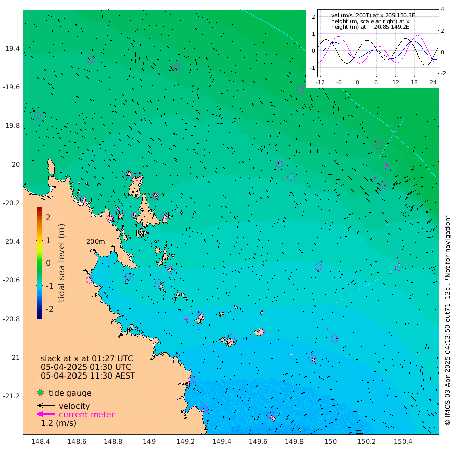 10cm/s 119T +10cm/s rms + 2cm/s 5T. Brampton I 18m 3cm/s 164T +9cm/s rms + 6cm/s 66T. Wigton I 38m 8cm/s -172T +7cm/s rms + 8cm/s 141T. Tern I 47m 5cm/s -46T +7cm/s rms + 12cm/s 54T. N Bugatti Rf 64m 10cm/s 1T +3cm/s rms + 13cm/s 178T. W Bugatti Rf 70m 5cm/s -139T +3cm/s rms + 3cm/s -130T. Creal Rf 69m -62cm Holbourne I -104cm Tern I -61cm Bugatti Rf -74cm Creal Rf -52cm White Tip I -57cm Wallaby Reef -46cm Kennedy Reef -52cm Unnamed Reef No. 2 -74cm Tideway Reef -76cm Hayman Island -84cm Square Reef -89cm Double Bay -89cm Molle Island -77cm Cid Harbour -75cm Hook Island -71cm Border Island -78cm Haslewood Island -84cm Shute Harbour -93cm Thomas Island -99cm Credlin Reef -112cm East Repulse Island -90cm Blacksmith Island -105cm Laguna Quays -109cm Carlisle Island (Off) -110cm St. Bees Island -102cm Scawfell Island -110cm Penrith Island -118cm Mackay Outer Harbour -125cm Hay Point -123cm Prudhoe Island