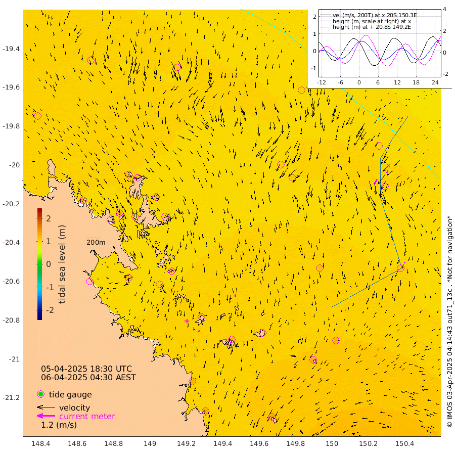 13cm/s -142T +10cm/s rms + 2cm/s 5T. Brampton I 18m 15cm/s 172T +9cm/s rms + 6cm/s 66T. Wigton I 38m 5cm/s -98T +7cm/s rms + 8cm/s 141T. Tern I 47m 20cm/s -178T +7cm/s rms + 12cm/s 54T. N Bugatti Rf 64m 37cm/s -151T +3cm/s rms + 13cm/s 178T. W Bugatti Rf 70m 9cm/s -166T +3cm/s rms + 3cm/s -130T. Creal Rf 69m 108cm Holbourne I 123cm Tern I 94cm Bugatti Rf 99cm Creal Rf 93cm White Tip I 93cm Wallaby Reef 98cm Kennedy Reef 100cm Unnamed Reef No. 2 102cm Tideway Reef 108cm Hayman Island 110cm Square Reef 126cm Double Bay 124cm Molle Island 97cm Cid Harbour 112cm Hook Island 96cm Border Island 96cm Haslewood Island 108cm Shute Harbour 104cm Thomas Island 118cm Credlin Reef 119cm East Repulse Island 98cm Blacksmith Island 109cm Laguna Quays 123cm Carlisle Island (Off) 115cm St. Bees Island 104cm Scawfell Island 126cm Penrith Island 124cm Mackay Outer Harbour 131cm Hay Point 135cm Prudhoe Island