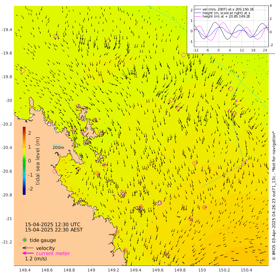 16cm/s -171T +10cm/s rms + 2cm/s 5T. Brampton I 18m 30cm/s 169T +9cm/s rms + 6cm/s 66T. Wigton I 38m 2cm/s -104T +7cm/s rms + 8cm/s 141T. Tern I 47m 23cm/s -177T +7cm/s rms + 12cm/s 54T. N Bugatti Rf 64m 33cm/s -149T +3cm/s rms + 13cm/s 178T. W Bugatti Rf 70m 13cm/s 158T +3cm/s rms + 3cm/s -130T. Creal Rf 69m 68cm Holbourne I 129cm Tern I 82cm Bugatti Rf 102cm Creal Rf 71cm White Tip I 66cm Wallaby Reef 68cm Kennedy Reef 63cm Unnamed Reef No. 2 75cm Tideway Reef 81cm Hayman Island 102cm Square Reef 72cm Double Bay 74cm Molle Island 92cm Cid Harbour 74cm Hook Island 81cm Border Island 80cm Haslewood Island 84cm Shute Harbour 96cm Thomas Island 114cm Credlin Reef 100cm East Repulse Island 113cm Blacksmith Island 100cm Laguna Quays 108cm Carlisle Island (Off) 138cm St. Bees Island 126cm Scawfell Island 135cm Penrith Island 128cm Mackay Outer Harbour 139cm Hay Point 141cm Prudhoe Island