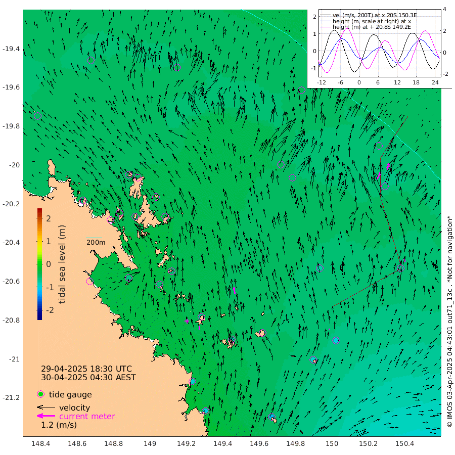 28cm/s -2T +10cm/s rms + 2cm/s 5T. Brampton I 18m 44cm/s -11T +9cm/s rms + 6cm/s 66T. Wigton I 38m 5cm/s 15T +7cm/s rms + 8cm/s 141T. Tern I 47m 44cm/s 11T +7cm/s rms + 12cm/s 54T. N Bugatti Rf 64m 55cm/s 27T +3cm/s rms + 13cm/s 178T. W Bugatti Rf 70m 19cm/s -13T +3cm/s rms + 3cm/s -130T. Creal Rf 69m -46cm Holbourne I -102cm Tern I -53cm Bugatti Rf -73cm Creal Rf -43cm White Tip I -33cm Wallaby Reef -40cm Kennedy Reef -45cm Unnamed Reef No. 2 -40cm Tideway Reef -49cm Hayman Island -55cm Square Reef -56cm Double Bay -29cm Molle Island -48cm Cid Harbour -48cm Hook Island -36cm Border Island -45cm Haslewood Island -50cm Shute Harbour -60cm Thomas Island -77cm Credlin Reef -64cm East Repulse Island -57cm Blacksmith Island -57cm Laguna Quays -75cm Carlisle Island (Off) -90cm St. Bees Island -77cm Scawfell Island -92cm Penrith Island -91cm Mackay Outer Harbour -105cm Hay Point -119cm Prudhoe Island