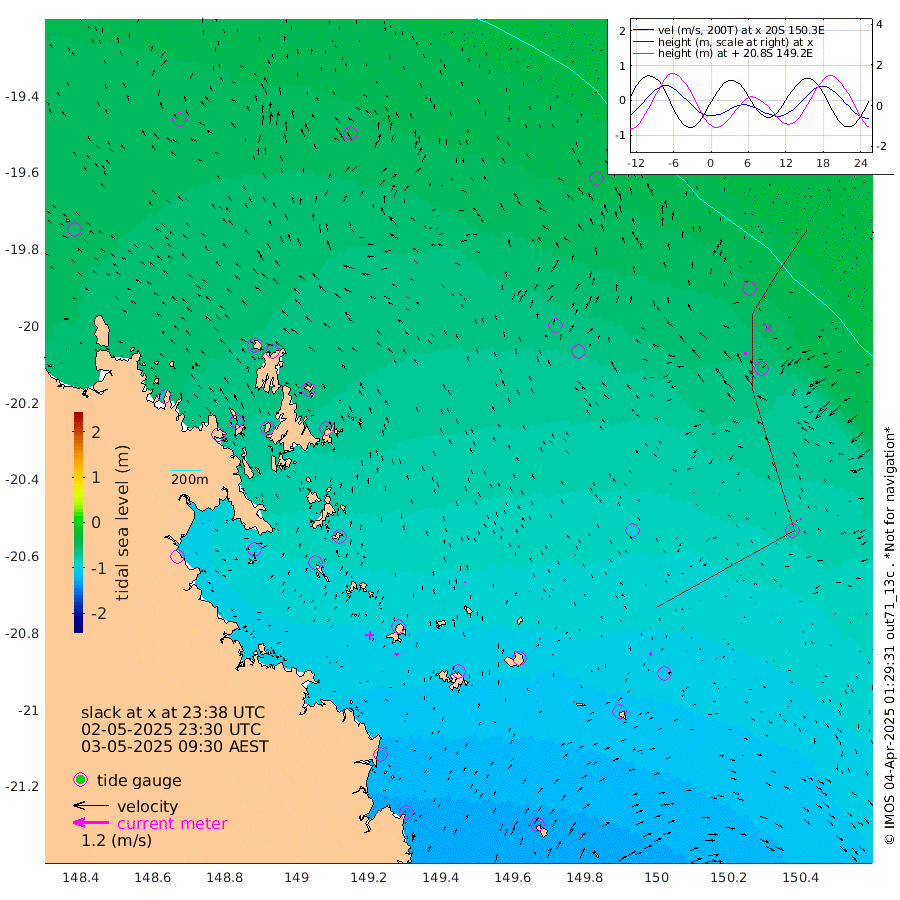 13cm/s 115T +10cm/s rms + 2cm/s 5T. Brampton I 18m 2cm/s 149T +9cm/s rms + 6cm/s 66T. Wigton I 38m 10cm/s -173T +7cm/s rms + 8cm/s 141T. Tern I 47m 4cm/s -45T +7cm/s rms + 12cm/s 54T. N Bugatti Rf 64m 7cm/s -2T +3cm/s rms + 13cm/s 178T. W Bugatti Rf 70m 6cm/s -153T +3cm/s rms + 3cm/s -130T. Creal Rf 69m -53cm Holbourne I -106cm Tern I -57cm Bugatti Rf -73cm Creal Rf -46cm White Tip I -44cm Wallaby Reef -39cm Kennedy Reef -43cm Unnamed Reef No. 2 -64cm Tideway Reef -67cm Hayman Island -71cm Square Reef -85cm Double Bay -81cm Molle Island -66cm Cid Harbour -69cm Hook Island -60cm Border Island -68cm Haslewood Island -75cm Shute Harbour -88cm Thomas Island -92cm Credlin Reef -104cm East Repulse Island -85cm Blacksmith Island -101cm Laguna Quays -104cm Carlisle Island (Off) -107cm St. Bees Island -97cm Scawfell Island -110cm Penrith Island -121cm Mackay Outer Harbour -130cm Hay Point -128cm Prudhoe Island