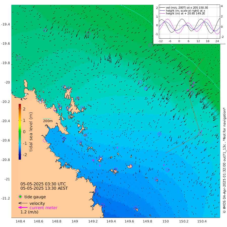 20cm/s 161T +10cm/s rms + 2cm/s 5T. Brampton I 18m 19cm/s 176T +9cm/s rms + 6cm/s 66T. Wigton I 38m 16cm/s -154T +7cm/s rms + 8cm/s 141T. Tern I 47m 25cm/s -151T +7cm/s rms + 12cm/s 54T. N Bugatti Rf 64m 22cm/s -132T +3cm/s rms + 13cm/s 178T. W Bugatti Rf 70m 14cm/s -139T +3cm/s rms + 3cm/s -130T. Creal Rf 69m -67cm Holbourne I -121cm Tern I -72cm Bugatti Rf -92cm Creal Rf -58cm White Tip I -68cm Wallaby Reef -43cm Kennedy Reef -48cm Unnamed Reef No. 2 -94cm Tideway Reef -85cm Hayman Island -116cm Square Reef -95cm Double Bay -108cm Molle Island -101cm Cid Harbour -85cm Hook Island -92cm Border Island -104cm Haslewood Island -102cm Shute Harbour -119cm Thomas Island -122cm Credlin Reef -136cm East Repulse Island -122cm Blacksmith Island -137cm Laguna Quays -132cm Carlisle Island (Off) -145cm St. Bees Island -129cm Scawfell Island -130cm Penrith Island -145cm Mackay Outer Harbour -149cm Hay Point -148cm Prudhoe Island