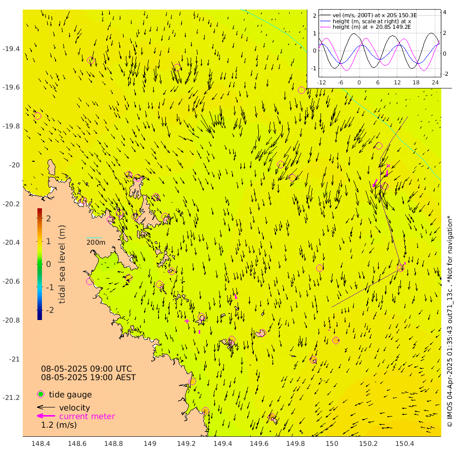 22cm/s -175T +10cm/s rms + 2cm/s 5T. Brampton I 18m 32cm/s 166T +9cm/s rms + 6cm/s 66T. Wigton I 38m 4cm/s -157T +7cm/s rms + 8cm/s 141T. Tern I 47m 42cm/s -175T +7cm/s rms + 12cm/s 54T. N Bugatti Rf 64m 58cm/s -153T +3cm/s rms + 13cm/s 178T. W Bugatti Rf 70m 18cm/s 175T +3cm/s rms + 3cm/s -130T. Creal Rf 69m 78cm Holbourne I 112cm Tern I 72cm Bugatti Rf 85cm Creal Rf 66cm White Tip I 69cm Wallaby Reef 81cm Kennedy Reef 70cm Unnamed Reef No. 2 74cm Tideway Reef 84cm Hayman Island 89cm Square Reef 85cm Double Bay 70cm Molle Island 74cm Cid Harbour 80cm Hook Island 66cm Border Island 63cm Haslewood Island 79cm Shute Harbour 84cm Thomas Island 96cm Credlin Reef 86cm East Repulse Island 78cm Blacksmith Island 80cm Laguna Quays 89cm Carlisle Island (Off) 101cm St. Bees Island 83cm Scawfell Island 106cm Penrith Island 103cm Mackay Outer Harbour 113cm Hay Point 127cm Prudhoe Island