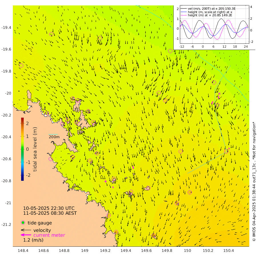 19cm/s 161T +10cm/s rms + 2cm/s 5T. Brampton I 18m 31cm/s 163T +9cm/s rms + 6cm/s 66T. Wigton I 38m 6cm/s 134T +7cm/s rms + 8cm/s 141T. Tern I 47m 29cm/s -172T +7cm/s rms + 12cm/s 54T. N Bugatti Rf 64m 38cm/s -154T +3cm/s rms + 13cm/s 178T. W Bugatti Rf 70m 16cm/s 154T +3cm/s rms + 3cm/s -130T. Creal Rf 69m 66cm Holbourne I 115cm Tern I 63cm Bugatti Rf 83cm Creal Rf 52cm White Tip I 58cm Wallaby Reef 59cm Kennedy Reef 48cm Unnamed Reef No. 2 65cm Tideway Reef 69cm Hayman Island 90cm Square Reef 65cm Double Bay 70cm Molle Island 77cm Cid Harbour 64cm Hook Island 68cm Border Island 70cm Haslewood Island 75cm Shute Harbour 84cm Thomas Island 93cm Credlin Reef 82cm East Repulse Island 89cm Blacksmith Island 89cm Laguna Quays 92cm Carlisle Island (Off) 95cm St. Bees Island 94cm Scawfell Island 115cm Penrith Island 111cm Mackay Outer Harbour 121cm Hay Point 132cm Prudhoe Island