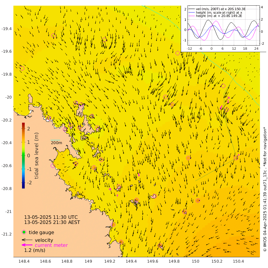 20cm/s -169T +10cm/s rms + 2cm/s 5T. Brampton I 18m 34cm/s 169T +9cm/s rms + 6cm/s 66T. Wigton I 38m 4cm/s -119T +7cm/s rms + 8cm/s 141T. Tern I 47m 30cm/s -177T +7cm/s rms + 12cm/s 54T. N Bugatti Rf 64m 46cm/s -150T +3cm/s rms + 13cm/s 178T. W Bugatti Rf 70m 16cm/s 166T +3cm/s rms + 3cm/s -130T. Creal Rf 69m 90cm Holbourne I 145cm Tern I 99cm Bugatti Rf 116cm Creal Rf 89cm White Tip I 86cm Wallaby Reef 89cm Kennedy Reef 85cm Unnamed Reef No. 2 93cm Tideway Reef 102cm Hayman Island 121cm Square Reef 93cm Double Bay 96cm Molle Island 110cm Cid Harbour 93cm Hook Island 97cm Border Island 95cm Haslewood Island 102cm Shute Harbour 111cm Thomas Island 130cm Credlin Reef 116cm East Repulse Island 127cm Blacksmith Island 113cm Laguna Quays 123cm Carlisle Island (Off) 149cm St. Bees Island 139cm Scawfell Island 149cm Penrith Island 141cm Mackay Outer Harbour 152cm Hay Point 155cm Prudhoe Island