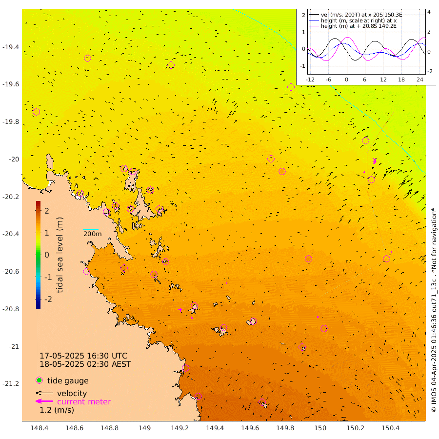 16cm/s -40T +10cm/s rms + 2cm/s 5T. Brampton I 18m 9cm/s -6T +9cm/s rms + 6cm/s 66T. Wigton I 38m 14cm/s 16T +7cm/s rms + 8cm/s 141T. Tern I 47m 20cm/s 35T +7cm/s rms + 12cm/s 54T. N Bugatti Rf 64m 12cm/s 28T +3cm/s rms + 13cm/s 178T. W Bugatti Rf 70m 8cm/s 38T +3cm/s rms + 3cm/s -130T. Creal Rf 69m 91cm Holbourne I 154cm Tern I 96cm Bugatti Rf 116cm Creal Rf 80cm White Tip I 85cm Wallaby Reef 79cm Kennedy Reef 70cm Unnamed Reef No. 2 110cm Tideway Reef 108cm Hayman Island 135cm Square Reef 106cm Double Bay 140cm Molle Island 124cm Cid Harbour 106cm Hook Island 121cm Border Island 120cm Haslewood Island 122cm Shute Harbour 138cm Thomas Island 145cm Credlin Reef 151cm East Repulse Island 154cm Blacksmith Island 159cm Laguna Quays 155cm Carlisle Island (Off) 157cm St. Bees Island 153cm Scawfell Island 171cm Penrith Island 177cm Mackay Outer Harbour 185cm Hay Point 173cm Prudhoe Island