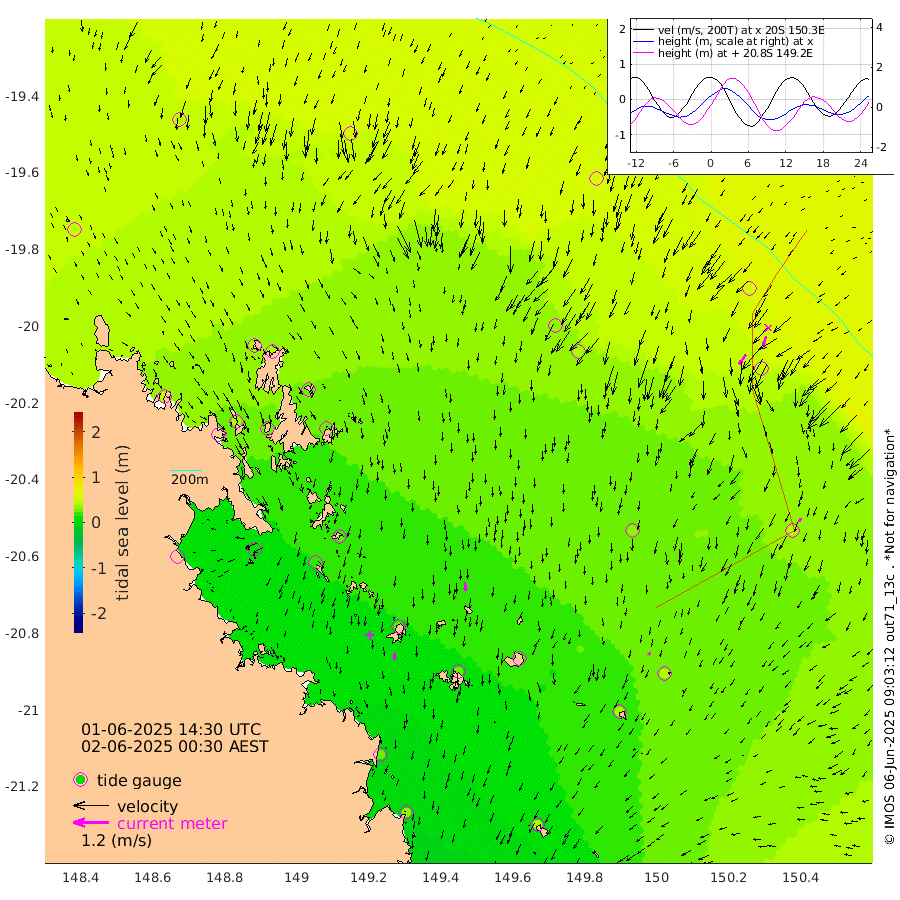 21cm/s -176T +10cm/s rms + 2cm/s 5T. Brampton I 18m 30cm/s 176T +9cm/s rms + 6cm/s 66T. Wigton I 38m 13cm/s -136T +7cm/s rms + 8cm/s 141T. Tern I 47m 33cm/s -161T +7cm/s rms + 12cm/s 54T. N Bugatti Rf 64m 39cm/s -146T +3cm/s rms + 13cm/s 178T. W Bugatti Rf 70m 15cm/s -157T +3cm/s rms + 3cm/s -130T. Creal Rf 69m 51cm Holbourne I 44cm Tern I 50cm Bugatti Rf 46cm Creal Rf 56cm White Tip I 44cm Wallaby Reef 53cm Kennedy Reef 59cm Unnamed Reef No. 2 34cm Tideway Reef 43cm Hayman Island 40cm Square Reef 50cm Double Bay 45cm Molle Island 28cm Cid Harbour 44cm Hook Island 27cm Border Island 24cm Haslewood Island 32cm Shute Harbour 25cm Thomas Island 35cm Credlin Reef 14cm East Repulse Island 21cm Blacksmith Island 16cm Laguna Quays 25cm Carlisle Island (Off) 23cm St. Bees Island 27cm Scawfell Island 45cm Penrith Island 28cm Mackay Outer Harbour 32cm Hay Point 43cm Prudhoe Island