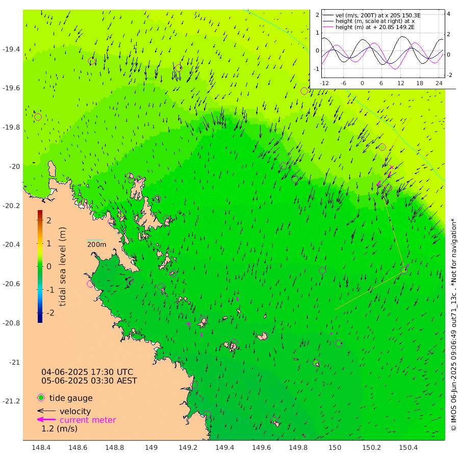 22cm/s 174T +10cm/s rms + 2cm/s 5T. Brampton I 18m 27cm/s 175T +9cm/s rms + 6cm/s 66T. Wigton I 38m 13cm/s -152T +7cm/s rms + 8cm/s 141T. Tern I 47m 36cm/s -159T +7cm/s rms + 12cm/s 54T. N Bugatti Rf 64m 38cm/s -144T +3cm/s rms + 13cm/s 178T. W Bugatti Rf 70m 17cm/s -161T +3cm/s rms + 3cm/s -130T. Creal Rf 69m 34cm Holbourne I 10cm Tern I 28cm Bugatti Rf 18cm Creal Rf 37cm White Tip I 34cm Wallaby Reef 42cm Kennedy Reef 42cm Unnamed Reef No. 2 16cm Tideway Reef 29cm Hayman Island 17cm Square Reef 28cm Double Bay 32cm Molle Island 12cm Cid Harbour 22cm Hook Island 12cm Border Island 7cm Haslewood Island 14cm Shute Harbour 0cm Thomas Island 7cm Credlin Reef -10cm East Repulse Island -1cm Blacksmith Island -9cm Laguna Quays -1cm Carlisle Island (Off) -15cm St. Bees Island -4cm Scawfell Island 18cm Penrith Island -5cm Mackay Outer Harbour -4cm Hay Point 0cm Prudhoe Island