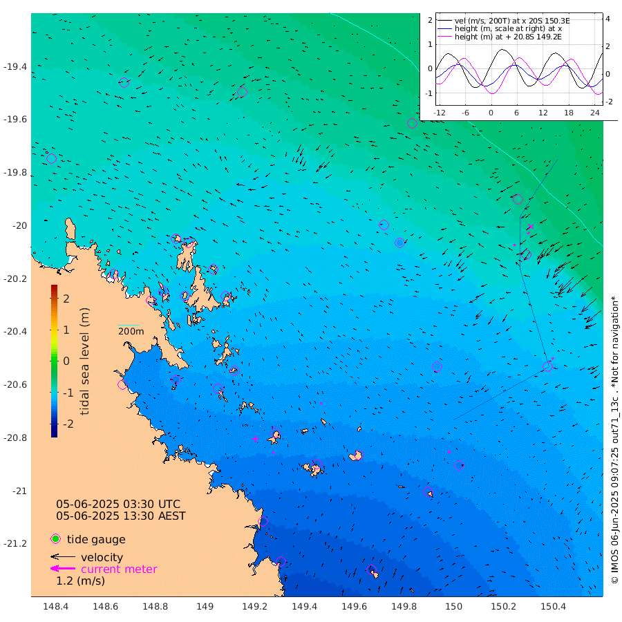 12cm/s 157T +10cm/s rms + 2cm/s 5T. Brampton I 18m 9cm/s -165T +9cm/s rms + 6cm/s 66T. Wigton I 38m 13cm/s -147T +7cm/s rms + 8cm/s 141T. Tern I 47m 13cm/s -131T +7cm/s rms + 12cm/s 54T. N Bugatti Rf 64m 9cm/s -94T +3cm/s rms + 13cm/s 178T. W Bugatti Rf 70m 10cm/s -127T +3cm/s rms + 3cm/s -130T. Creal Rf 69m -91cm Holbourne I -147cm Tern I -87cm Bugatti Rf -110cm Creal Rf -71cm White Tip I -84cm Wallaby Reef -70cm Kennedy Reef -66cm Unnamed Reef No. 2 -109cm Tideway Reef -99cm Hayman Island -130cm Square Reef -120cm Double Bay -129cm Molle Island -112cm Cid Harbour -106cm Hook Island -104cm Border Island -113cm Haslewood Island -118cm Shute Harbour -135cm Thomas Island -135cm Credlin Reef -147cm East Repulse Island -133cm Blacksmith Island -152cm Laguna Quays -146cm Carlisle Island (Off) -151cm St. Bees Island -133cm Scawfell Island -145cm Penrith Island -165cm Mackay Outer Harbour -172cm Hay Point -178cm Prudhoe Island
