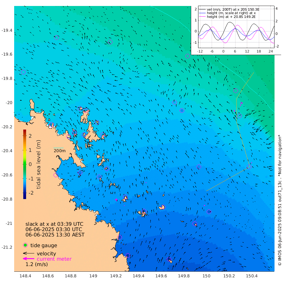 4cm/s 119T +10cm/s rms + 2cm/s 5T. Brampton I 18m 5cm/s -59T +9cm/s rms + 6cm/s 66T. Wigton I 38m 9cm/s -144T +7cm/s rms + 8cm/s 141T. Tern I 47m 8cm/s -54T +7cm/s rms + 12cm/s 54T. N Bugatti Rf 64m 13cm/s -1T +3cm/s rms + 13cm/s 178T. W Bugatti Rf 70m 6cm/s -84T +3cm/s rms + 3cm/s -130T. Creal Rf 69m -104cm Holbourne I -158cm Tern I -97cm Bugatti Rf -119cm Creal Rf -82cm White Tip I -94cm Wallaby Reef -89cm Kennedy Reef -79cm Unnamed Reef No. 2 -115cm Tideway Reef -109cm Hayman Island -138cm Square Reef -125cm Double Bay -135cm Molle Island -118cm Cid Harbour -115cm Hook Island -110cm Border Island -115cm Haslewood Island -124cm Shute Harbour -139cm Thomas Island -141cm Credlin Reef -146cm East Repulse Island -136cm Blacksmith Island -152cm Laguna Quays -148cm Carlisle Island (Off) -152cm St. Bees Island -134cm Scawfell Island -154cm Penrith Island -169cm Mackay Outer Harbour -178cm Hay Point -187cm Prudhoe Island