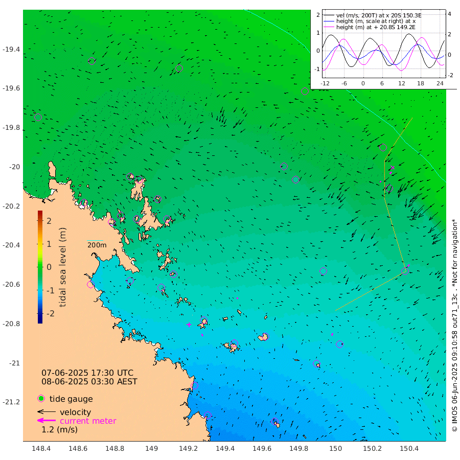 14cm/s 155T +10cm/s rms + 2cm/s 5T. Brampton I 18m 10cm/s -168T +9cm/s rms + 6cm/s 66T. Wigton I 38m 15cm/s -156T +7cm/s rms + 8cm/s 141T. Tern I 47m 18cm/s -143T +7cm/s rms + 12cm/s 54T. N Bugatti Rf 64m 9cm/s -120T +3cm/s rms + 13cm/s 178T. W Bugatti Rf 70m 14cm/s -140T +3cm/s rms + 3cm/s -130T. Creal Rf 69m -38cm Holbourne I -105cm Tern I -39cm Bugatti Rf -68cm Creal Rf -22cm White Tip I -22cm Wallaby Reef -17cm Kennedy Reef -13cm Unnamed Reef No. 2 -53cm Tideway Reef -43cm Hayman Island -71cm Square Reef -61cm Double Bay -44cm Molle Island -54cm Cid Harbour -53cm Hook Island -52cm Border Island -57cm Haslewood Island -63cm Shute Harbour -87cm Thomas Island -85cm Credlin Reef -91cm East Repulse Island -84cm Blacksmith Island -102cm Laguna Quays -92cm Carlisle Island (Off) -115cm St. Bees Island -98cm Scawfell Island -96cm Penrith Island -122cm Mackay Outer Harbour -132cm Hay Point -144cm Prudhoe Island