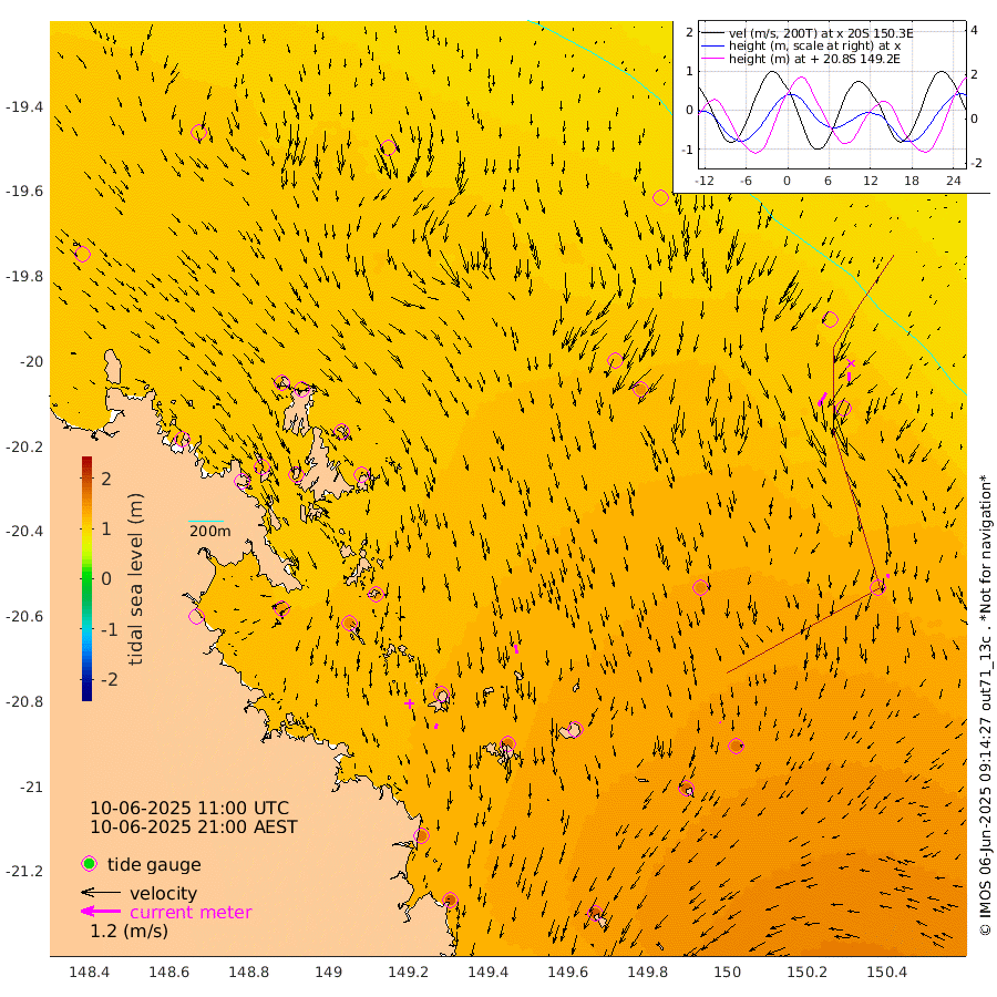 15cm/s -155T +10cm/s rms + 2cm/s 5T. Brampton I 18m 27cm/s 167T +9cm/s rms + 6cm/s 66T. Wigton I 38m 3cm/s -74T +7cm/s rms + 8cm/s 141T. Tern I 47m 25cm/s 176T +7cm/s rms + 12cm/s 54T. N Bugatti Rf 64m 44cm/s -151T +3cm/s rms + 13cm/s 178T. W Bugatti Rf 70m 12cm/s 163T +3cm/s rms + 3cm/s -130T. Creal Rf 69m 112cm Holbourne I 170cm Tern I 114cm Bugatti Rf 134cm Creal Rf 103cm White Tip I 103cm Wallaby Reef 106cm Kennedy Reef 99cm Unnamed Reef No. 2 115cm Tideway Reef 123cm Hayman Island 145cm Square Reef 118cm Double Bay 126cm Molle Island 130cm Cid Harbour 116cm Hook Island 118cm Border Island 115cm Haslewood Island 125cm Shute Harbour 137cm Thomas Island 153cm Credlin Reef 142cm East Repulse Island 150cm Blacksmith Island 142cm Laguna Quays 148cm Carlisle Island (Off) 171cm St. Bees Island 161cm Scawfell Island 173cm Penrith Island 170cm Mackay Outer Harbour 181cm Hay Point 185cm Prudhoe Island