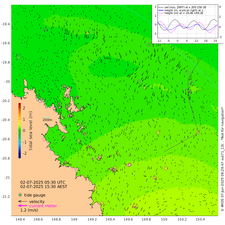 8cm/s -126T +10cm/s rms + 2cm/s 5T. Brampton I 18m 11cm/s 168T +9cm/s rms + 6cm/s 66T. Wigton I 38m 2cm/s -10T +7cm/s rms + 8cm/s 141T. Tern I 47m 15cm/s 180T +7cm/s rms + 12cm/s 54T. N Bugatti Rf 64m 22cm/s -149T +3cm/s rms + 13cm/s 178T. W Bugatti Rf 70m 5cm/s 171T +3cm/s rms + 3cm/s -130T. Creal Rf 69m 22cm Holbourne I 54cm Tern I 22cm Bugatti Rf 34cm Creal Rf 15cm White Tip I 9cm Wallaby Reef 26cm Kennedy Reef 15cm Unnamed Reef No. 2 21cm Tideway Reef 26cm Hayman Island 24cm Square Reef 29cm Double Bay 18cm Molle Island 19cm Cid Harbour 30cm Hook Island 19cm Border Island 15cm Haslewood Island 26cm Shute Harbour 36cm Thomas Island 38cm Credlin Reef 36cm East Repulse Island 31cm Blacksmith Island 39cm Laguna Quays 39cm Carlisle Island (Off) 46cm St. Bees Island 31cm Scawfell Island 51cm Penrith Island 58cm Mackay Outer Harbour 65cm Hay Point 71cm Prudhoe Island