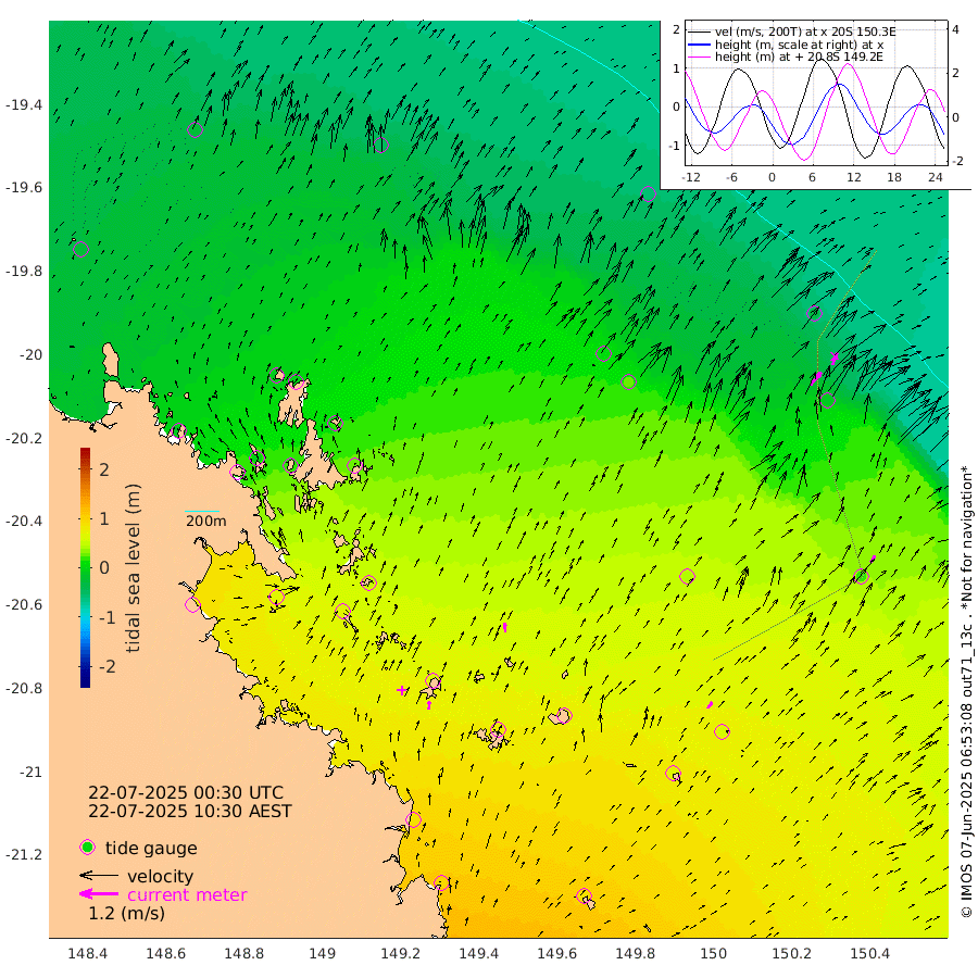 26cm/s 2T +10cm/s rms + 2cm/s 5T. Brampton I 18m 27cm/s -3T +9cm/s rms + 6cm/s 66T. Wigton I 38m 24cm/s 38T +7cm/s rms + 8cm/s 141T. Tern I 47m 40cm/s 19T +7cm/s rms + 12cm/s 54T. N Bugatti Rf 64m 52cm/s 39T +3cm/s rms + 13cm/s 178T. W Bugatti Rf 70m 25cm/s 34T +3cm/s rms + 3cm/s -130T. Creal Rf 69m -29cm Holbourne I 56cm Tern I -12cm Bugatti Rf 20cm Creal Rf -35cm White Tip I -28cm Wallaby Reef -48cm Kennedy Reef -53cm Unnamed Reef No. 2 6cm Tideway Reef -8cm Hayman Island 25cm Square Reef -11cm Double Bay -1cm Molle Island 22cm Cid Harbour -7cm Hook Island 16cm Border Island 30cm Haslewood Island 19cm Shute Harbour 50cm Thomas Island 42cm Credlin Reef 62cm East Repulse Island 60cm Blacksmith Island 74cm Laguna Quays 58cm Carlisle Island (Off) 75cm St. Bees Island 74cm Scawfell Island 63cm Penrith Island 86cm Mackay Outer Harbour 93cm Hay Point 87cm Prudhoe Island