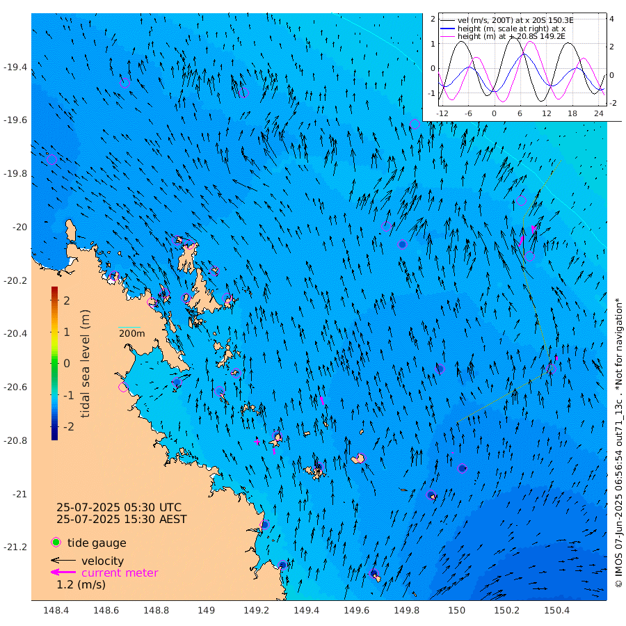 28cm/s -10T +10cm/s rms + 2cm/s 5T. Brampton I 18m 38cm/s -17T +9cm/s rms + 6cm/s 66T. Wigton I 38m 5cm/s -10T +7cm/s rms + 8cm/s 141T. Tern I 47m 37cm/s -1T +7cm/s rms + 12cm/s 54T. N Bugatti Rf 64m 56cm/s 26T +3cm/s rms + 13cm/s 178T. W Bugatti Rf 70m 21cm/s -10T +3cm/s rms + 3cm/s -130T. Creal Rf 69m -138cm Holbourne I -176cm Tern I -124cm Bugatti Rf -140cm Creal Rf -114cm White Tip I -124cm Wallaby Reef -127cm Kennedy Reef -119cm Unnamed Reef No. 2 -134cm Tideway Reef -137cm Hayman Island -160cm Square Reef -148cm Double Bay -141cm Molle Island -137cm Cid Harbour -138cm Hook Island -128cm Border Island -130cm Haslewood Island -140cm Shute Harbour -141cm Thomas Island -163cm Credlin Reef -152cm East Repulse Island -141cm Blacksmith Island -144cm Laguna Quays -163cm Carlisle Island (Off) -170cm St. Bees Island -150cm Scawfell Island -174cm Penrith Island -167cm Mackay Outer Harbour -178cm Hay Point -193cm Prudhoe Island