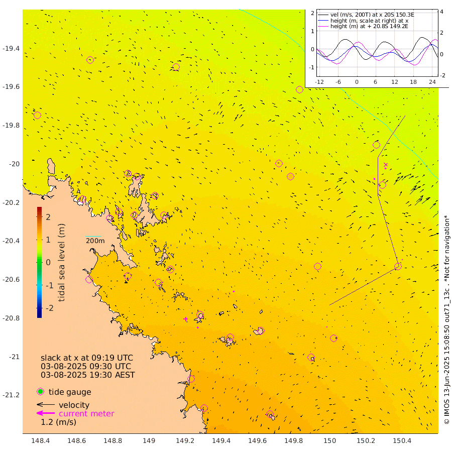11cm/s -47T +10cm/s rms + 2cm/s 5T. Brampton I 18m 7cm/s 11T +9cm/s rms + 6cm/s 66T. Wigton I 38m 7cm/s -2T +7cm/s rms + 8cm/s 141T. Tern I 47m 10cm/s 67T +7cm/s rms + 12cm/s 54T. N Bugatti Rf 64m 11cm/s -168T +3cm/s rms + 13cm/s 178T. W Bugatti Rf 70m 3cm/s 22T +3cm/s rms + 3cm/s -130T. Creal Rf 69m 90cm Holbourne I 110cm Tern I 75cm Bugatti Rf 85cm Creal Rf 68cm White Tip I 75cm Wallaby Reef 76cm Kennedy Reef 68cm Unnamed Reef No. 2 92cm Tideway Reef 89cm Hayman Island 107cm Square Reef 104cm Double Bay 105cm Molle Island 86cm Cid Harbour 96cm Hook Island 85cm Border Island 83cm Haslewood Island 96cm Shute Harbour 103cm Thomas Island 102cm Credlin Reef 106cm East Repulse Island 97cm Blacksmith Island 111cm Laguna Quays 105cm Carlisle Island (Off) 114cm St. Bees Island 100cm Scawfell Island 106cm Penrith Island 118cm Mackay Outer Harbour 122cm Hay Point 132cm Prudhoe Island