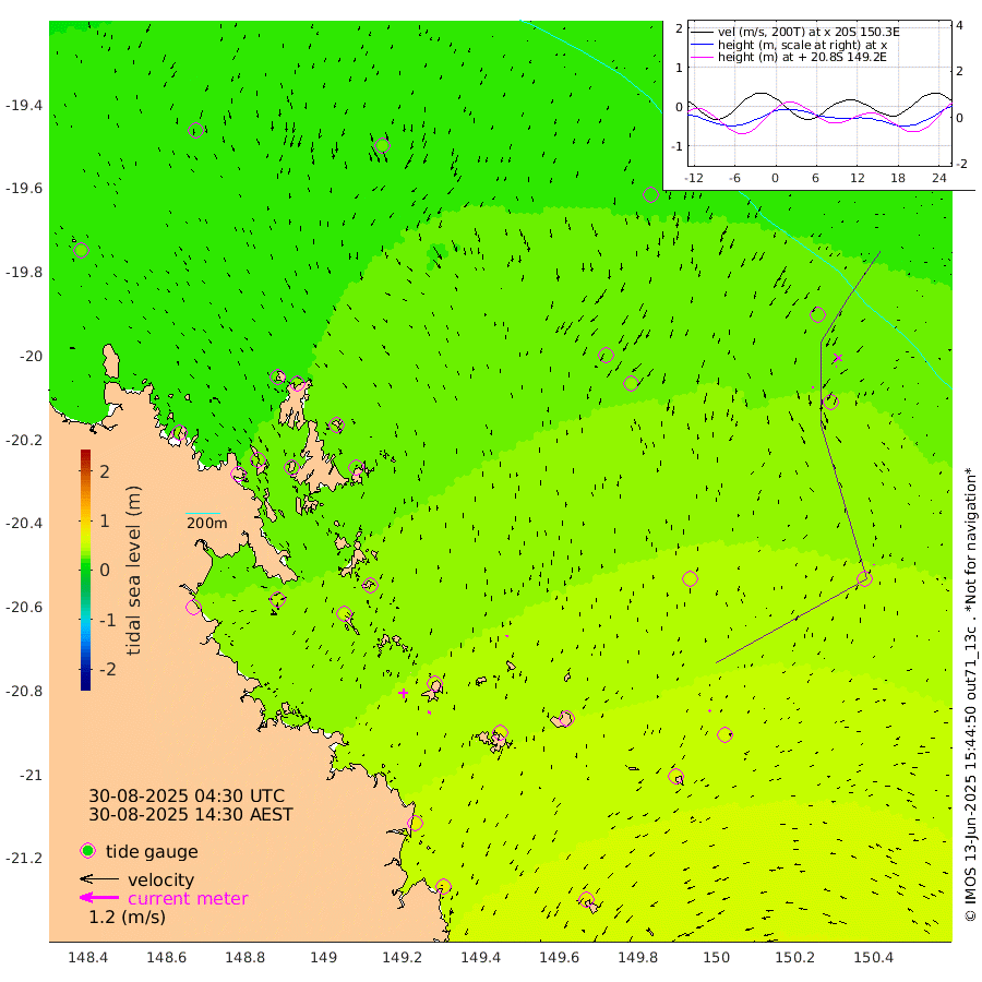 9cm/s -78T +10cm/s rms + 2cm/s 5T. Brampton I 18m 5cm/s -167T +9cm/s rms + 6cm/s 66T. Wigton I 38m 6cm/s -43T +7cm/s rms + 8cm/s 141T. Tern I 47m 1cm/s 73T +7cm/s rms + 12cm/s 54T. N Bugatti Rf 64m 5cm/s -105T +3cm/s rms + 13cm/s 178T. W Bugatti Rf 70m 2cm/s 4T +3cm/s rms + 3cm/s -130T. Creal Rf 69m 25cm Holbourne I 60cm Tern I 33cm Bugatti Rf 44cm Creal Rf 26cm White Tip I 16cm Wallaby Reef 28cm Kennedy Reef 19cm Unnamed Reef No. 2 26cm Tideway Reef 29cm Hayman Island 35cm Square Reef 30cm Double Bay 35cm Molle Island 32cm Cid Harbour 34cm Hook Island 33cm Border Island 28cm Haslewood Island 34cm Shute Harbour 44cm Thomas Island 46cm Credlin Reef 42cm East Repulse Island 52cm Blacksmith Island 52cm Laguna Quays 48cm Carlisle Island (Off) 62cm St. Bees Island 57cm Scawfell Island 65cm Penrith Island 69cm Mackay Outer Harbour 75cm Hay Point 71cm Prudhoe Island