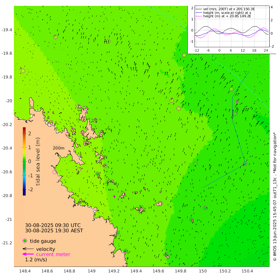 8cm/s -12T +10cm/s rms + 2cm/s 5T. Brampton I 18m 15cm/s -3T +9cm/s rms + 6cm/s 66T. Wigton I 38m 2cm/s 0T +7cm/s rms + 8cm/s 141T. Tern I 47m 12cm/s 32T +7cm/s rms + 12cm/s 54T. N Bugatti Rf 64m 5cm/s 77T +3cm/s rms + 13cm/s 178T. W Bugatti Rf 70m 4cm/s -30T +3cm/s rms + 3cm/s -130T. Creal Rf 69m 38cm Holbourne I 10cm Tern I 21cm Bugatti Rf 13cm Creal Rf 25cm White Tip I 34cm Wallaby Reef 29cm Kennedy Reef 31cm Unnamed Reef No. 2 37cm Tideway Reef 32cm Hayman Island 35cm Square Reef 44cm Double Bay 41cm Molle Island 25cm Cid Harbour 37cm Hook Island 26cm Border Island 27cm Haslewood Island 32cm Shute Harbour 25cm Thomas Island 22cm Credlin Reef 30cm East Repulse Island 14cm Blacksmith Island 24cm Laguna Quays 24cm Carlisle Island (Off) 20cm St. Bees Island 10cm Scawfell Island 6cm Penrith Island 11cm Mackay Outer Harbour 7cm Hay Point 14cm Prudhoe Island