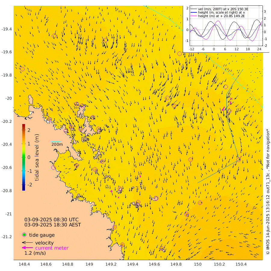 16cm/s -159T +10cm/s rms + 2cm/s 5T. Brampton I 18m 23cm/s 169T +9cm/s rms + 6cm/s 66T. Wigton I 38m 6cm/s -131T +7cm/s rms + 8cm/s 141T. Tern I 47m 27cm/s -174T +7cm/s rms + 12cm/s 54T. N Bugatti Rf 64m 48cm/s -149T +3cm/s rms + 13cm/s 178T. W Bugatti Rf 70m 14cm/s -180T +3cm/s rms + 3cm/s -130T. Creal Rf 69m 105cm Holbourne I 125cm Tern I 95cm Bugatti Rf 100cm Creal Rf 93cm White Tip I 98cm Wallaby Reef 101cm Kennedy Reef 97cm Unnamed Reef No. 2 101cm Tideway Reef 113cm Hayman Island 118cm Square Reef 105cm Double Bay 121cm Molle Island 111cm Cid Harbour 100cm Hook Island 104cm Border Island 98cm Haslewood Island 108cm Shute Harbour 105cm Thomas Island 120cm Credlin Reef 113cm East Repulse Island 115cm Blacksmith Island 108cm Laguna Quays 116cm Carlisle Island (Off) 114cm St. Bees Island 117cm Scawfell Island 135cm Penrith Island 122cm Mackay Outer Harbour 129cm Hay Point 127cm Prudhoe Island
