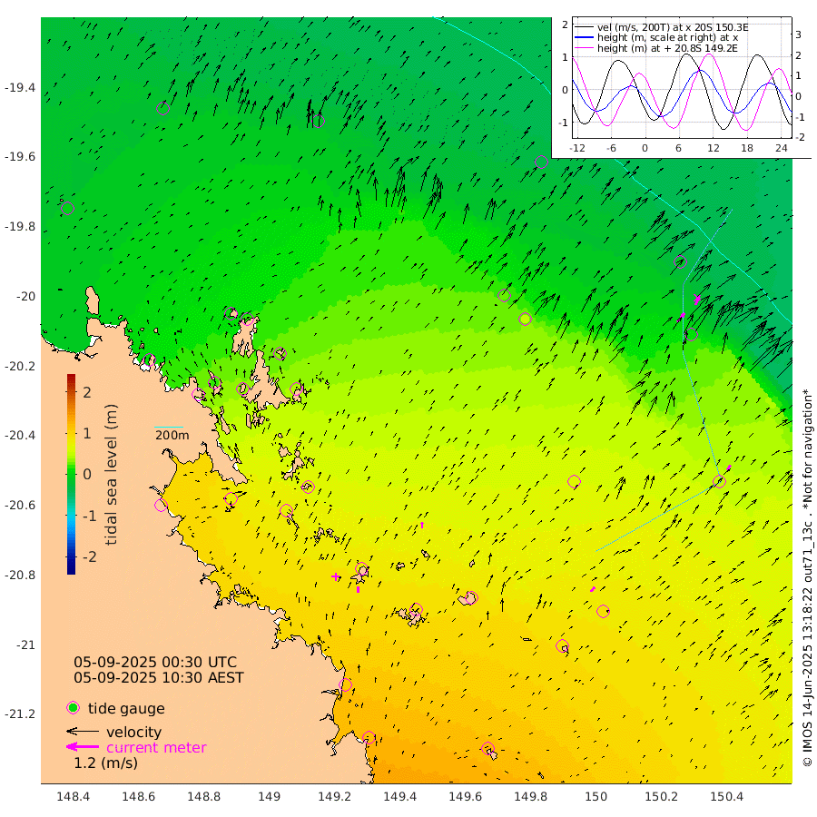 23cm/s -4T +10cm/s rms + 2cm/s 5T. Brampton I 18m 21cm/s 0T +9cm/s rms + 6cm/s 66T. Wigton I 38m 23cm/s 35T +7cm/s rms + 8cm/s 141T. Tern I 47m 32cm/s 26T +7cm/s rms + 12cm/s 54T. N Bugatti Rf 64m 41cm/s 42T +3cm/s rms + 13cm/s 178T. W Bugatti Rf 70m 21cm/s 36T +3cm/s rms + 3cm/s -130T. Creal Rf 69m -5cm Holbourne I 83cm Tern I 11cm Bugatti Rf 46cm Creal Rf -13cm White Tip I -9cm Wallaby Reef -17cm Kennedy Reef -33cm Unnamed Reef No. 2 27cm Tideway Reef 12cm Hayman Island 52cm Square Reef 11cm Double Bay 19cm Molle Island 35cm Cid Harbour 20cm Hook Island 31cm Border Island 38cm Haslewood Island 37cm Shute Harbour 71cm Thomas Island 62cm Credlin Reef 70cm East Repulse Island 74cm Blacksmith Island 92cm Laguna Quays 69cm Carlisle Island (Off) 92cm St. Bees Island 80cm Scawfell Island 85cm Penrith Island 110cm Mackay Outer Harbour 119cm Hay Point 126cm Prudhoe Island