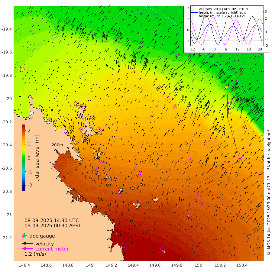 43cm/s -14T +10cm/s rms + 2cm/s 5T. Brampton I 18m 40cm/s -2T +9cm/s rms + 6cm/s 66T. Wigton I 38m 38cm/s 30T +7cm/s rms + 8cm/s 141T. Tern I 47m 69cm/s 26T +7cm/s rms + 12cm/s 54T. N Bugatti Rf 64m 68cm/s 34T +3cm/s rms + 13cm/s 178T. W Bugatti Rf 70m 31cm/s 35T +3cm/s rms + 3cm/s -130T. Creal Rf 69m 56cm Holbourne I 188cm Tern I 75cm Bugatti Rf 125cm Creal Rf 38cm White Tip I 44cm Wallaby Reef 26cm Kennedy Reef 9cm Unnamed Reef No. 2 102cm Tideway Reef 83cm Hayman Island 143cm Square Reef 76cm Double Bay 121cm Molle Island 125cm Cid Harbour 91cm Hook Island 122cm Border Island 132cm Haslewood Island 122cm Shute Harbour 168cm Thomas Island 165cm Credlin Reef 185cm East Repulse Island 186cm Blacksmith Island 210cm Laguna Quays 188cm Carlisle Island (Off) 203cm St. Bees Island 188cm Scawfell Island 199cm Penrith Island 236cm Mackay Outer Harbour 249cm Hay Point 236cm Prudhoe Island