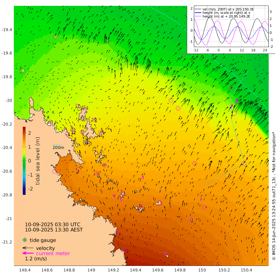 39cm/s -20T +10cm/s rms + 2cm/s 5T. Brampton I 18m 36cm/s -5T +9cm/s rms + 6cm/s 66T. Wigton I 38m 31cm/s 25T +7cm/s rms + 8cm/s 141T. Tern I 47m 57cm/s 24T +7cm/s rms + 12cm/s 54T. N Bugatti Rf 64m 61cm/s 34T +3cm/s rms + 13cm/s 178T. W Bugatti Rf 70m 30cm/s 29T +3cm/s rms + 3cm/s -130T. Creal Rf 69m 33cm Holbourne I 151cm Tern I 53cm Bugatti Rf 96cm Creal Rf 22cm White Tip I 26cm Wallaby Reef 17cm Kennedy Reef -2cm Unnamed Reef No. 2 74cm Tideway Reef 60cm Hayman Island 101cm Square Reef 62cm Double Bay 90cm Molle Island 99cm Cid Harbour 69cm Hook Island 92cm Border Island 100cm Haslewood Island 96cm Shute Harbour 138cm Thomas Island 130cm Credlin Reef 157cm East Repulse Island 161cm Blacksmith Island 175cm Laguna Quays 154cm Carlisle Island (Off) 186cm St. Bees Island 163cm Scawfell Island 163cm Penrith Island 199cm Mackay Outer Harbour 210cm Hay Point 191cm Prudhoe Island