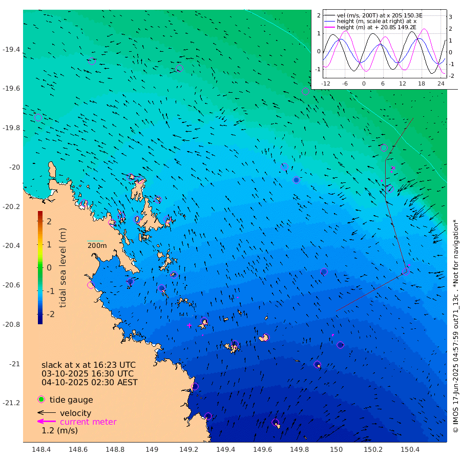 7cm/s 138T +10cm/s rms + 2cm/s 5T. Brampton I 18m 7cm/s -36T +9cm/s rms + 6cm/s 66T. Wigton I 38m 14cm/s -145T +7cm/s rms + 8cm/s 141T. Tern I 47m 9cm/s -75T +7cm/s rms + 12cm/s 54T. N Bugatti Rf 64m 11cm/s -15T +3cm/s rms + 13cm/s 178T. W Bugatti Rf 70m 11cm/s -86T +3cm/s rms + 3cm/s -130T. Creal Rf 69m -94cm Holbourne I -190cm Tern I -103cm Bugatti Rf -137cm Creal Rf -80cm White Tip I -89cm Wallaby Reef -80cm Kennedy Reef -67cm Unnamed Reef No. 2 -121cm Tideway Reef -118cm Hayman Island -160cm Square Reef -107cm Double Bay -134cm Molle Island -139cm Cid Harbour -112cm Hook Island -125cm Border Island -131cm Haslewood Island -135cm Shute Harbour -162cm Thomas Island -170cm Credlin Reef -173cm East Repulse Island -171cm Blacksmith Island -181cm Laguna Quays -175cm Carlisle Island (Off) -187cm St. Bees Island -177cm Scawfell Island -201cm Penrith Island -209cm Mackay Outer Harbour -223cm Hay Point -226cm Prudhoe Island