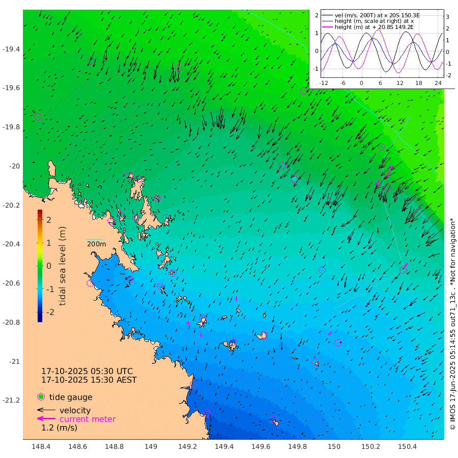 26cm/s 174T +10cm/s rms + 2cm/s 5T. Brampton I 18m 29cm/s -176T +9cm/s rms + 6cm/s 66T. Wigton I 38m 27cm/s -144T +7cm/s rms + 8cm/s 141T. Tern I 47m 47cm/s -150T +7cm/s rms + 12cm/s 54T. N Bugatti Rf 64m 43cm/s -140T +3cm/s rms + 13cm/s 178T. W Bugatti Rf 70m 23cm/s -136T +3cm/s rms + 3cm/s -130T. Creal Rf 69m -27cm Holbourne I -118cm Tern I -37cm Bugatti Rf -73cm Creal Rf -11cm White Tip I -23cm Wallaby Reef -7cm Kennedy Reef 5cm Unnamed Reef No. 2 -65cm Tideway Reef -49cm Hayman Island -90cm Square Reef -48cm Double Bay -57cm Molle Island -81cm Cid Harbour -53cm Hook Island -73cm Border Island -85cm Haslewood Island -78cm Shute Harbour -110cm Thomas Island -109cm Credlin Reef -131cm East Repulse Island -120cm Blacksmith Island -136cm Laguna Quays -126cm Carlisle Island (Off) -151cm St. Bees Island -123cm Scawfell Island -117cm Penrith Island -149cm Mackay Outer Harbour -157cm Hay Point -153cm Prudhoe Island