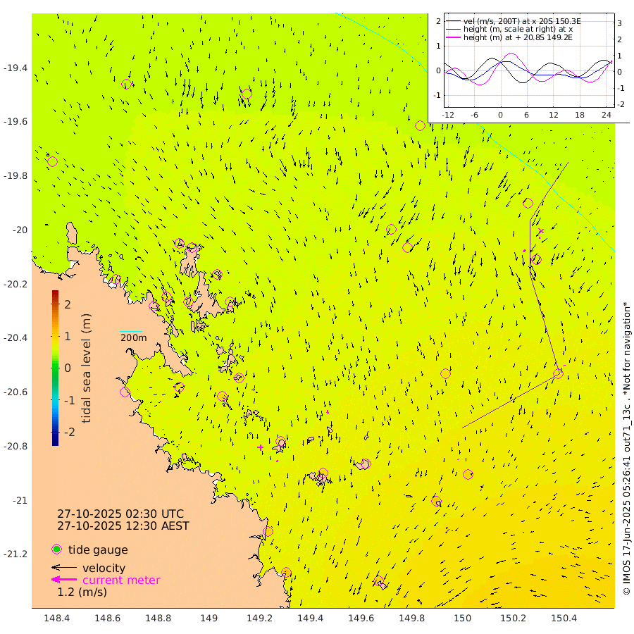 9cm/s -132T +10cm/s rms + 2cm/s 5T. Brampton I 18m 16cm/s 177T +9cm/s rms + 6cm/s 66T. Wigton I 38m 4cm/s -66T +7cm/s rms + 8cm/s 141T. Tern I 47m 7cm/s -174T +7cm/s rms + 12cm/s 54T. N Bugatti Rf 64m 12cm/s -139T +3cm/s rms + 13cm/s 178T. W Bugatti Rf 70m 4cm/s 158T +3cm/s rms + 3cm/s -130T. Creal Rf 69m 52cm Holbourne I 97cm Tern I 65cm Bugatti Rf 77cm Creal Rf 58cm White Tip I 52cm Wallaby Reef 52cm Kennedy Reef 53cm Unnamed Reef No. 2 58cm Tideway Reef 62cm Hayman Island 74cm Square Reef 56cm Double Bay 72cm Molle Island 74cm Cid Harbour 58cm Hook Island 67cm Border Island 67cm Haslewood Island 66cm Shute Harbour 76cm Thomas Island 87cm Credlin Reef 82cm East Repulse Island 92cm Blacksmith Island 82cm Laguna Quays 88cm Carlisle Island (Off) 97cm St. Bees Island 96cm Scawfell Island 105cm Penrith Island 101cm Mackay Outer Harbour 109cm Hay Point 99cm Prudhoe Island