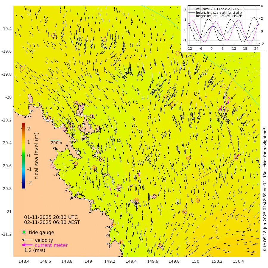 26cm/s -178T +10cm/s rms + 2cm/s 5T. Brampton I 18m 36cm/s 166T +9cm/s rms + 6cm/s 66T. Wigton I 38m 5cm/s -170T +7cm/s rms + 8cm/s 141T. Tern I 47m 44cm/s -174T +7cm/s rms + 12cm/s 54T. N Bugatti Rf 64m 60cm/s -152T +3cm/s rms + 13cm/s 178T. W Bugatti Rf 70m 21cm/s 170T +3cm/s rms + 3cm/s -130T. Creal Rf 69m 73cm Holbourne I 117cm Tern I 73cm Bugatti Rf 86cm Creal Rf 66cm White Tip I 72cm Wallaby Reef 76cm Kennedy Reef 69cm Unnamed Reef No. 2 74cm Tideway Reef 92cm Hayman Island 89cm Square Reef 82cm Double Bay 75cm Molle Island 91cm Cid Harbour 74cm Hook Island 74cm Border Island 77cm Haslewood Island 84cm Shute Harbour 88cm Thomas Island 106cm Credlin Reef 103cm East Repulse Island 101cm Blacksmith Island 88cm Laguna Quays 105cm Carlisle Island (Off) 126cm St. Bees Island 113cm Scawfell Island 123cm Penrith Island 111cm Mackay Outer Harbour 122cm Hay Point 119cm Prudhoe Island