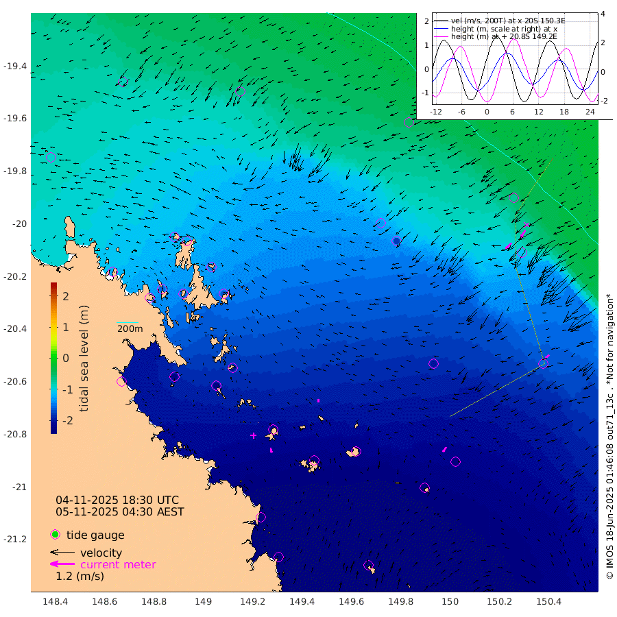 23cm/s 168T +10cm/s rms + 2cm/s 5T. Brampton I 18m 17cm/s -169T +9cm/s rms + 6cm/s 66T. Wigton I 38m 27cm/s -146T +7cm/s rms + 8cm/s 141T. Tern I 47m 40cm/s -148T +7cm/s rms + 12cm/s 54T. N Bugatti Rf 64m 38cm/s -135T +3cm/s rms + 13cm/s 178T. W Bugatti Rf 70m 22cm/s -130T +3cm/s rms + 3cm/s -130T. Creal Rf 69m -93cm Holbourne I -225cm Tern I -106cm Bugatti Rf -156cm Creal Rf -70cm White Tip I -83cm Wallaby Reef -66cm Kennedy Reef -48cm Unnamed Reef No. 2 -132cm Tideway Reef -119cm Hayman Island -176cm Square Reef -123cm Double Bay -157cm Molle Island -161cm Cid Harbour -126cm Hook Island -145cm Border Island -161cm Haslewood Island -157cm Shute Harbour -197cm Thomas Island -198cm Credlin Reef -220cm East Repulse Island -220cm Blacksmith Island -235cm Laguna Quays -222cm Carlisle Island (Off) -253cm St. Bees Island -230cm Scawfell Island -236cm Penrith Island -265cm Mackay Outer Harbour -281cm Hay Point -270cm Prudhoe Island