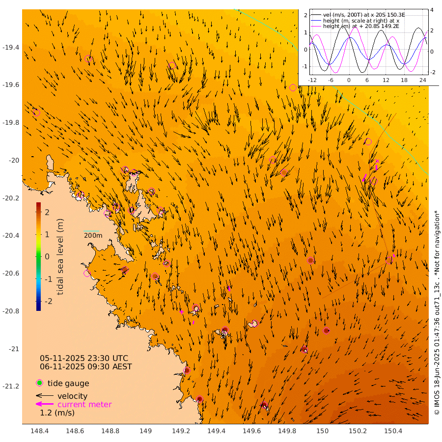 23cm/s -165T +10cm/s rms + 2cm/s 5T. Brampton I 18m 38cm/s 165T +9cm/s rms + 6cm/s 66T. Wigton I 38m 1cm/s 0T +7cm/s rms + 8cm/s 141T. Tern I 47m 35cm/s 177T +7cm/s rms + 12cm/s 54T. N Bugatti Rf 64m 55cm/s -154T +3cm/s rms + 13cm/s 178T. W Bugatti Rf 70m 19cm/s 157T +3cm/s rms + 3cm/s -130T. Creal Rf 69m 136cm Holbourne I 221cm Tern I 142cm Bugatti Rf 170cm Creal Rf 125cm White Tip I 127cm Wallaby Reef 127cm Kennedy Reef 124cm Unnamed Reef No. 2 147cm Tideway Reef 153cm Hayman Island 179cm Square Reef 156cm Double Bay 151cm Molle Island 165cm Cid Harbour 148cm Hook Island 147cm Border Island 153cm Haslewood Island 161cm Shute Harbour 178cm Thomas Island 203cm Credlin Reef 198cm East Repulse Island 188cm Blacksmith Island 185cm Laguna Quays 205cm Carlisle Island (Off) 229cm St. Bees Island 199cm Scawfell Island 220cm Penrith Island 222cm Mackay Outer Harbour 239cm Hay Point 243cm Prudhoe Island