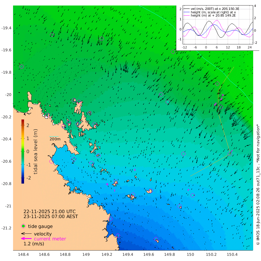 20cm/s 176T +10cm/s rms + 2cm/s 5T. Brampton I 18m 22cm/s -180T +9cm/s rms + 6cm/s 66T. Wigton I 38m 19cm/s -148T +7cm/s rms + 8cm/s 141T. Tern I 47m 38cm/s -154T +7cm/s rms + 12cm/s 54T. N Bugatti Rf 64m 40cm/s -145T +3cm/s rms + 13cm/s 178T. W Bugatti Rf 70m 17cm/s -153T +3cm/s rms + 3cm/s -130T. Creal Rf 69m -39cm Holbourne I -102cm Tern I -39cm Bugatti Rf -66cm Creal Rf -19cm White Tip I -25cm Wallaby Reef -25cm Kennedy Reef -3cm Unnamed Reef No. 2 -56cm Tideway Reef -44cm Hayman Island -78cm Square Reef -53cm Double Bay -73cm Molle Island -63cm Cid Harbour -59cm Hook Island -65cm Border Island -68cm Haslewood Island -68cm Shute Harbour -90cm Thomas Island -83cm Credlin Reef -95cm East Repulse Island -98cm Blacksmith Island -117cm Laguna Quays -99cm Carlisle Island (Off) -110cm St. Bees Island -101cm Scawfell Island -109cm Penrith Island -129cm Mackay Outer Harbour -136cm Hay Point -134cm Prudhoe Island