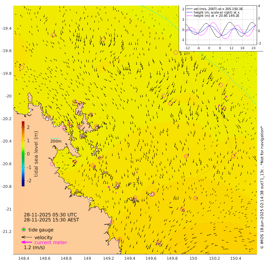 12cm/s -163T +10cm/s rms + 2cm/s 5T. Brampton I 18m 19cm/s 172T +9cm/s rms + 6cm/s 66T. Wigton I 38m 0cm/s 121T +7cm/s rms + 8cm/s 141T. Tern I 47m 18cm/s -177T +7cm/s rms + 12cm/s 54T. N Bugatti Rf 64m 25cm/s -150T +3cm/s rms + 13cm/s 178T. W Bugatti Rf 70m 12cm/s 173T +3cm/s rms + 3cm/s -130T. Creal Rf 69m 82cm Holbourne I 118cm Tern I 84cm Bugatti Rf 93cm Creal Rf 78cm White Tip I 81cm Wallaby Reef 78cm Kennedy Reef 78cm Unnamed Reef No. 2 87cm Tideway Reef 96cm Hayman Island 103cm Square Reef 88cm Double Bay 113cm Molle Island 100cm Cid Harbour 87cm Hook Island 92cm Border Island 95cm Haslewood Island 96cm Shute Harbour 97cm Thomas Island 113cm Credlin Reef 113cm East Repulse Island 107cm Blacksmith Island 105cm Laguna Quays 119cm Carlisle Island (Off) 107cm St. Bees Island 107cm Scawfell Island 133cm Penrith Island 122cm Mackay Outer Harbour 129cm Hay Point 119cm Prudhoe Island