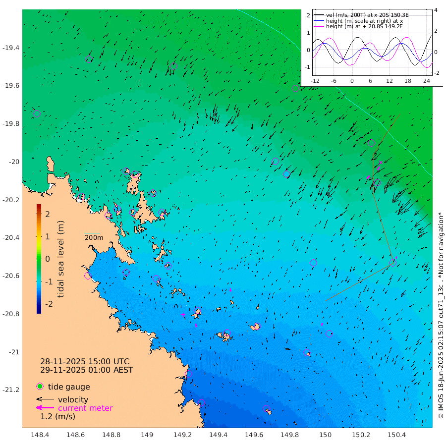 23cm/s 163T +10cm/s rms + 2cm/s 5T. Brampton I 18m 21cm/s 175T +9cm/s rms + 6cm/s 66T. Wigton I 38m 17cm/s -155T +7cm/s rms + 8cm/s 141T. Tern I 47m 27cm/s -149T +7cm/s rms + 12cm/s 54T. N Bugatti Rf 64m 26cm/s -137T +3cm/s rms + 13cm/s 178T. W Bugatti Rf 70m 14cm/s -149T +3cm/s rms + 3cm/s -130T. Creal Rf 69m -63cm Holbourne I -119cm Tern I -66cm Bugatti Rf -88cm Creal Rf -50cm White Tip I -60cm Wallaby Reef -48cm Kennedy Reef -37cm Unnamed Reef No. 2 -85cm Tideway Reef -76cm Hayman Island -111cm Square Reef -75cm Double Bay -108cm Molle Island -93cm Cid Harbour -79cm Hook Island -89cm Border Island -92cm Haslewood Island -94cm Shute Harbour -113cm Thomas Island -109cm Credlin Reef -119cm East Repulse Island -116cm Blacksmith Island -133cm Laguna Quays -116cm Carlisle Island (Off) -119cm St. Bees Island -114cm Scawfell Island -125cm Penrith Island -142cm Mackay Outer Harbour -146cm Hay Point -146cm Prudhoe Island