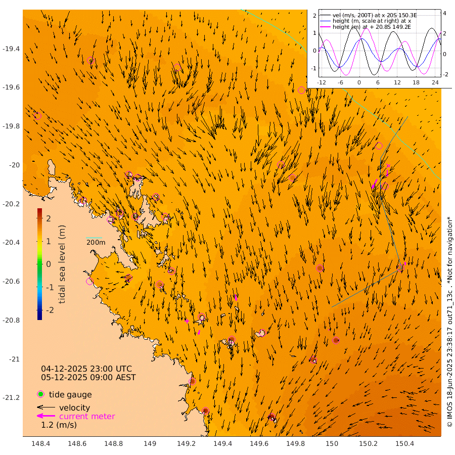 27cm/s -165T +10cm/s rms + 2cm/s 5T. Brampton I 18m 42cm/s 168T +9cm/s rms + 6cm/s 66T. Wigton I 38m 5cm/s -127T +7cm/s rms + 8cm/s 141T. Tern I 47m 43cm/s -178T +7cm/s rms + 12cm/s 54T. N Bugatti Rf 64m 68cm/s -152T +3cm/s rms + 13cm/s 178T. W Bugatti Rf 70m 21cm/s 172T +3cm/s rms + 3cm/s -130T. Creal Rf 69m 144cm Holbourne I 204cm Tern I 143cm Bugatti Rf 161cm Creal Rf 132cm White Tip I 132cm Wallaby Reef 136cm Kennedy Reef 138cm Unnamed Reef No. 2 145cm Tideway Reef 153cm Hayman Island 170cm Square Reef 159cm Double Bay 152cm Molle Island 155cm Cid Harbour 149cm Hook Island 140cm Border Island 143cm Haslewood Island 155cm Shute Harbour 162cm Thomas Island 189cm Credlin Reef 180cm East Repulse Island 166cm Blacksmith Island 163cm Laguna Quays 187cm Carlisle Island (Off) 200cm St. Bees Island 175cm Scawfell Island 199cm Penrith Island 197cm Mackay Outer Harbour 211cm Hay Point 219cm Prudhoe Island