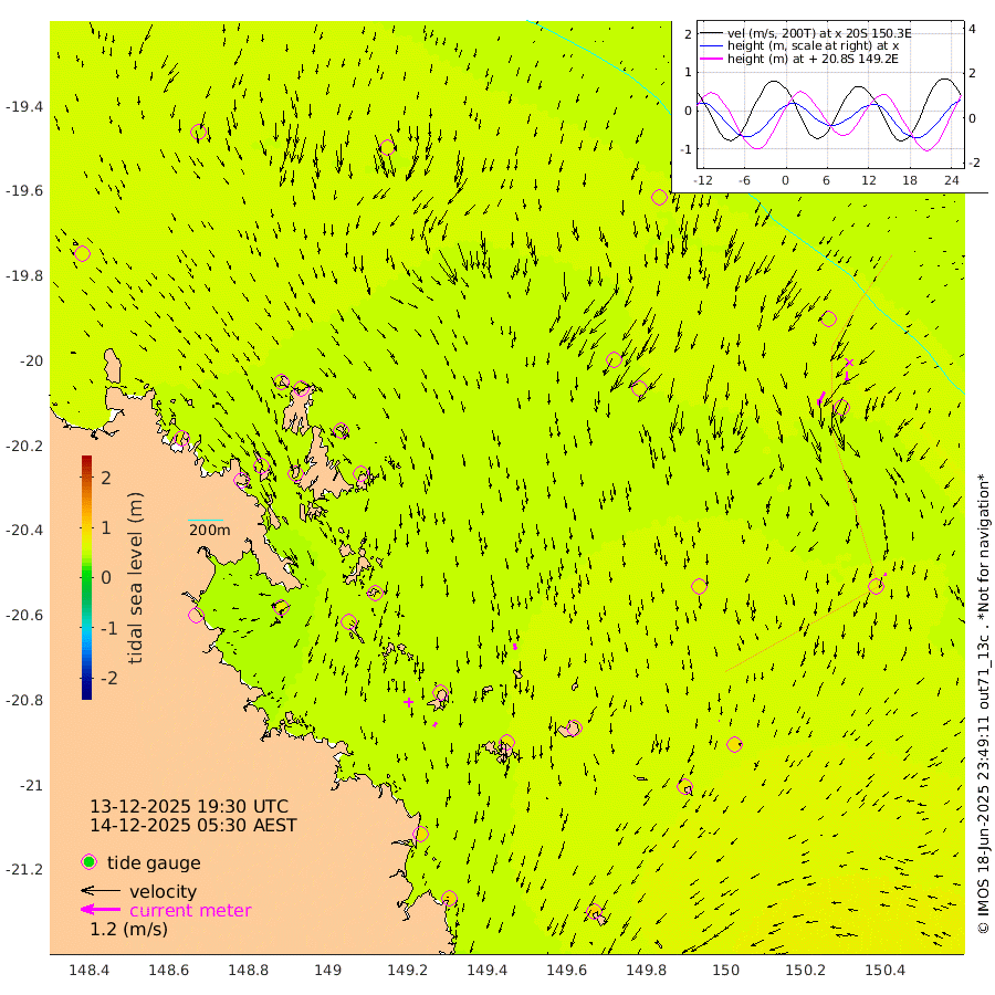 14cm/s -150T +10cm/s rms + 2cm/s 5T. Brampton I 18m 19cm/s 166T +9cm/s rms + 6cm/s 66T. Wigton I 38m 3cm/s -101T +7cm/s rms + 8cm/s 141T. Tern I 47m 28cm/s -178T +7cm/s rms + 12cm/s 54T. N Bugatti Rf 64m 42cm/s -151T +3cm/s rms + 13cm/s 178T. W Bugatti Rf 70m 11cm/s -180T +3cm/s rms + 3cm/s -130T. Creal Rf 69m 61cm Holbourne I 87cm Tern I 54cm Bugatti Rf 64cm Creal Rf 49cm White Tip I 48cm Wallaby Reef 62cm Kennedy Reef 54cm Unnamed Reef No. 2 56cm Tideway Reef 65cm Hayman Island 62cm Square Reef 70cm Double Bay 57cm Molle Island 54cm Cid Harbour 65cm Hook Island 50cm Border Island 47cm Haslewood Island 61cm Shute Harbour 67cm Thomas Island 74cm Credlin Reef 71cm East Repulse Island 60cm Blacksmith Island 66cm Laguna Quays 72cm Carlisle Island (Off) 79cm St. Bees Island 61cm Scawfell Island 81cm Penrith Island 85cm Mackay Outer Harbour 93cm Hay Point 102cm Prudhoe Island