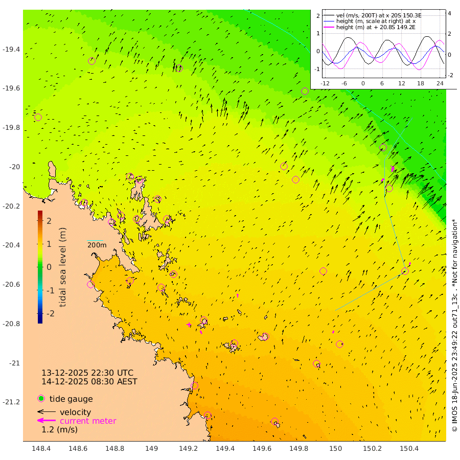 22cm/s -22T +10cm/s rms + 2cm/s 5T. Brampton I 18m 22cm/s -1T +9cm/s rms + 6cm/s 66T. Wigton I 38m 16cm/s 25T +7cm/s rms + 8cm/s 141T. Tern I 47m 29cm/s 32T +7cm/s rms + 12cm/s 54T. N Bugatti Rf 64m 24cm/s 47T +3cm/s rms + 13cm/s 178T. W Bugatti Rf 70m 15cm/s 27T +3cm/s rms + 3cm/s -130T. Creal Rf 69m 49cm Holbourne I 100cm Tern I 50cm Bugatti Rf 70cm Creal Rf 36cm White Tip I 45cm Wallaby Reef 35cm Kennedy Reef 31cm Unnamed Reef No. 2 72cm Tideway Reef 60cm Hayman Island 84cm Square Reef 69cm Double Bay 78cm Molle Island 78cm Cid Harbour 67cm Hook Island 70cm Border Island 78cm Haslewood Island 80cm Shute Harbour 99cm Thomas Island 95cm Credlin Reef 115cm East Repulse Island 100cm Blacksmith Island 114cm Laguna Quays 106cm Carlisle Island (Off) 117cm St. Bees Island 96cm Scawfell Island 94cm Penrith Island 121cm Mackay Outer Harbour 125cm Hay Point 122cm Prudhoe Island