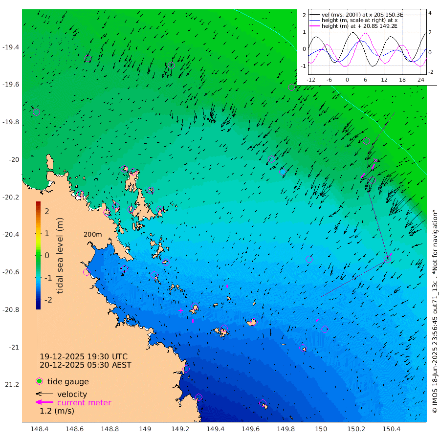 19cm/s -178T +10cm/s rms + 2cm/s 5T. Brampton I 18m 21cm/s -175T +9cm/s rms + 6cm/s 66T. Wigton I 38m 21cm/s -144T +7cm/s rms + 8cm/s 141T. Tern I 47m 38cm/s -151T +7cm/s rms + 12cm/s 54T. N Bugatti Rf 64m 39cm/s -140T +3cm/s rms + 13cm/s 178T. W Bugatti Rf 70m 18cm/s -145T +3cm/s rms + 3cm/s -130T. Creal Rf 69m -57cm Holbourne I -130cm Tern I -56cm Bugatti Rf -88cm Creal Rf -33cm White Tip I -43cm Wallaby Reef -38cm Kennedy Reef -17cm Unnamed Reef No. 2 -79cm Tideway Reef -63cm Hayman Island -107cm Square Reef -75cm Double Bay -92cm Molle Island -84cm Cid Harbour -79cm Hook Island -84cm Border Island -90cm Haslewood Island -91cm Shute Harbour -116cm Thomas Island -110cm Credlin Reef -121cm East Repulse Island -121cm Blacksmith Island -143cm Laguna Quays -125cm Carlisle Island (Off) -139cm St. Bees Island -125cm Scawfell Island -133cm Penrith Island -157cm Mackay Outer Harbour -165cm Hay Point -169cm Prudhoe Island
