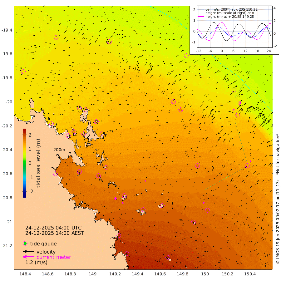 21cm/s -27T +10cm/s rms + 2cm/s 5T. Brampton I 18m 16cm/s -1T +9cm/s rms + 6cm/s 66T. Wigton I 38m 22cm/s 26T +7cm/s rms + 8cm/s 141T. Tern I 47m 32cm/s 34T +7cm/s rms + 12cm/s 54T. N Bugatti Rf 64m 25cm/s 33T +3cm/s rms + 13cm/s 178T. W Bugatti Rf 70m 14cm/s 46T +3cm/s rms + 3cm/s -130T. Creal Rf 69m 96cm Holbourne I 185cm Tern I 106cm Bugatti Rf 137cm Creal Rf 82cm White Tip I 88cm Wallaby Reef 77cm Kennedy Reef 65cm Unnamed Reef No. 2 125cm Tideway Reef 119cm Hayman Island 160cm Square Reef 114cm Double Bay 154cm Molle Island 141cm Cid Harbour 118cm Hook Island 137cm Border Island 140cm Haslewood Island 139cm Shute Harbour 165cm Thomas Island 171cm Credlin Reef 179cm East Repulse Island 182cm Blacksmith Island 193cm Laguna Quays 184cm Carlisle Island (Off) 190cm St. Bees Island 180cm Scawfell Island 204cm Penrith Island 216cm Mackay Outer Harbour 226cm Hay Point 216cm Prudhoe Island